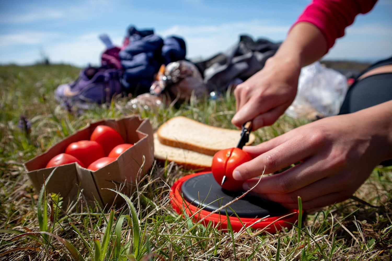 Miska o objemu 680 ml nebo 890 ml s vyztuženým dnem, která poslouží i jako krájecí prkénko. Složíš ji do 17 mm vysoké placky, takže jednoduše padne do většího hrnce/ešusu nebo jen tak do batohu. Alternativou může být hrneček Frontier UL Collapsible Cup o objemu 400 ml.