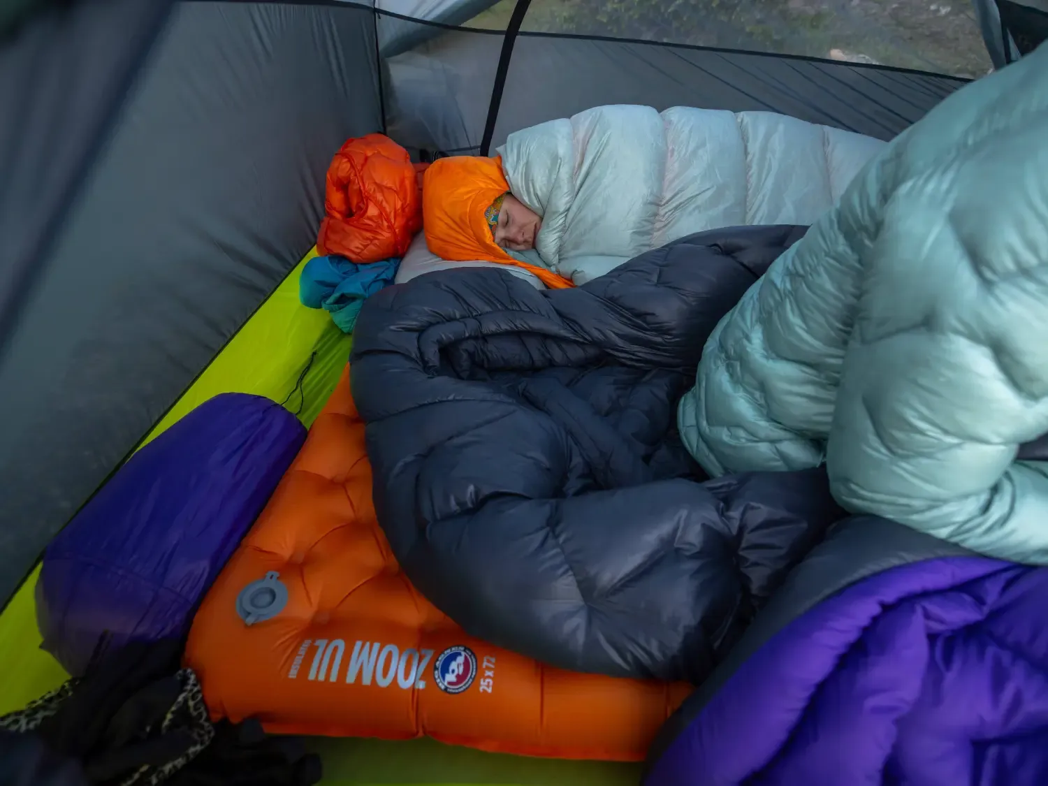 Většina ultralehkých spacáků má mumiový tvar, který kopíruje křivky lidského těla. Díky tomu je snížena jejich celková hmotnost. Zároveň je v nich méně vzduchu, který si ke svému pohodlí musíš vlastním teplem ohřát. Je ale potřeba si dávat pozor na šířku spacáku v ramenou, některé moderní spacáky mají spíše užší střih.