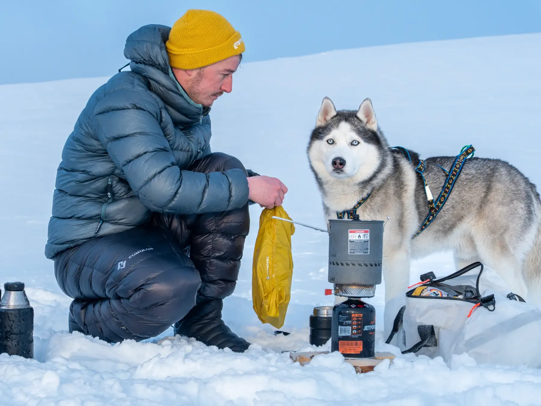 Jakmile se zastavíš – na jídlo, delší pauzu nebo rozložení kempu, tělo okamžitě začne ztrácet teplo. Tady nastupuje těžší kalibr – bunda, která tě rychle zahřeje a udrží v teple i v mrazu nebo větru. Jejím účelem je tedy především izolovat teplo a ochránit tělo před prochladnutím.