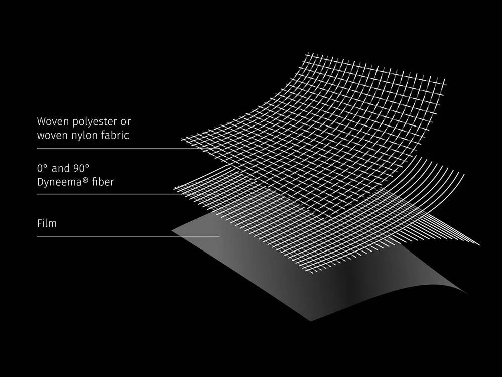 Složení materiálu Dyneema Woven Composite DWC