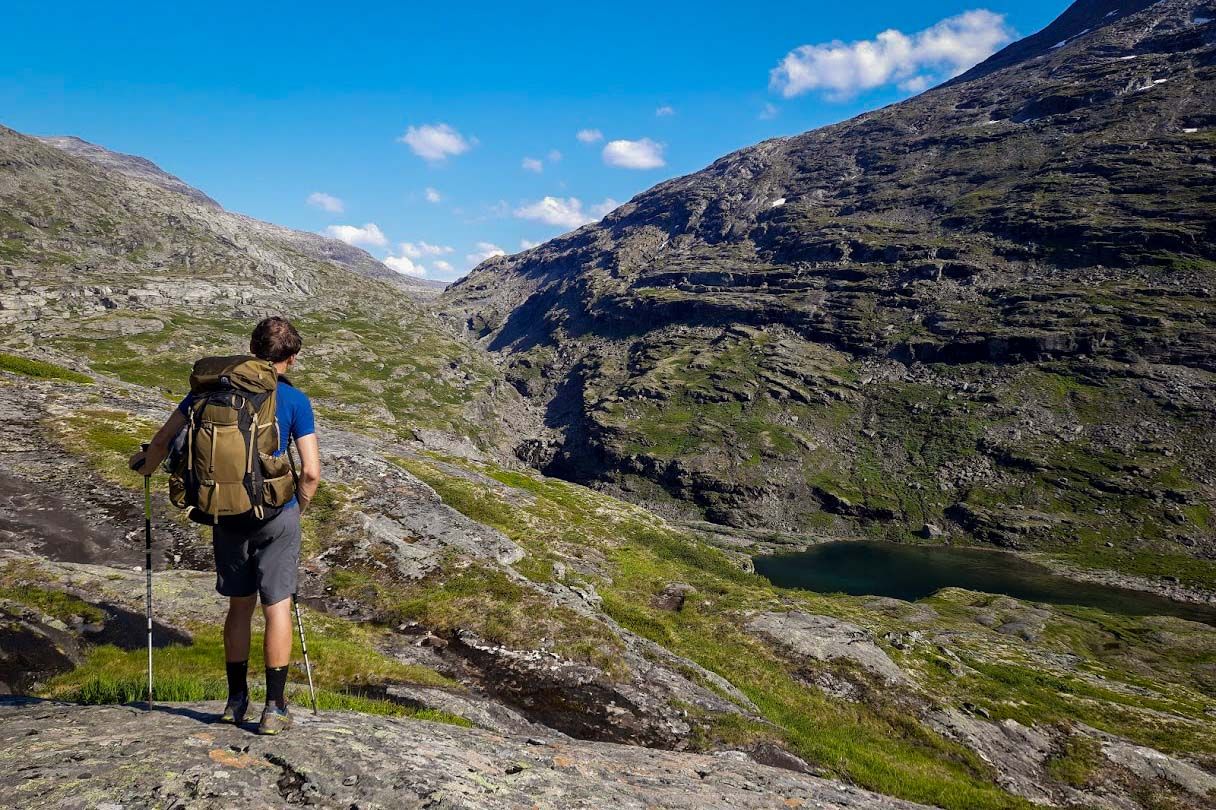 Sám se už nějakou dobu snažím objem a váhu svého batohu sesekat na minimum, ale během těch pár výprav na sever, co jsem za poslední roky stihnul, jsem si na vlastní kůži vyzkoušel, že minimalismus má v norských horách prostě své limity. Už jen k nástupu na trek to často bývá daleko a místní hory vám během jediného letního týdne dokážou nachystat počasí, které by se u nás mohlo směle řadit do několika ročních období – horko, déšť, mlha, vítr, mráz, sníh, bouřky… A když si k takovým podmínkám přičtete absenci signálu, neznačené cesty v podmáčeném terénu a nedostupnost obchodů, tak vám zbyde batoh o váze a objemu, který by si minimalista za rámeček rozhodně nedal.