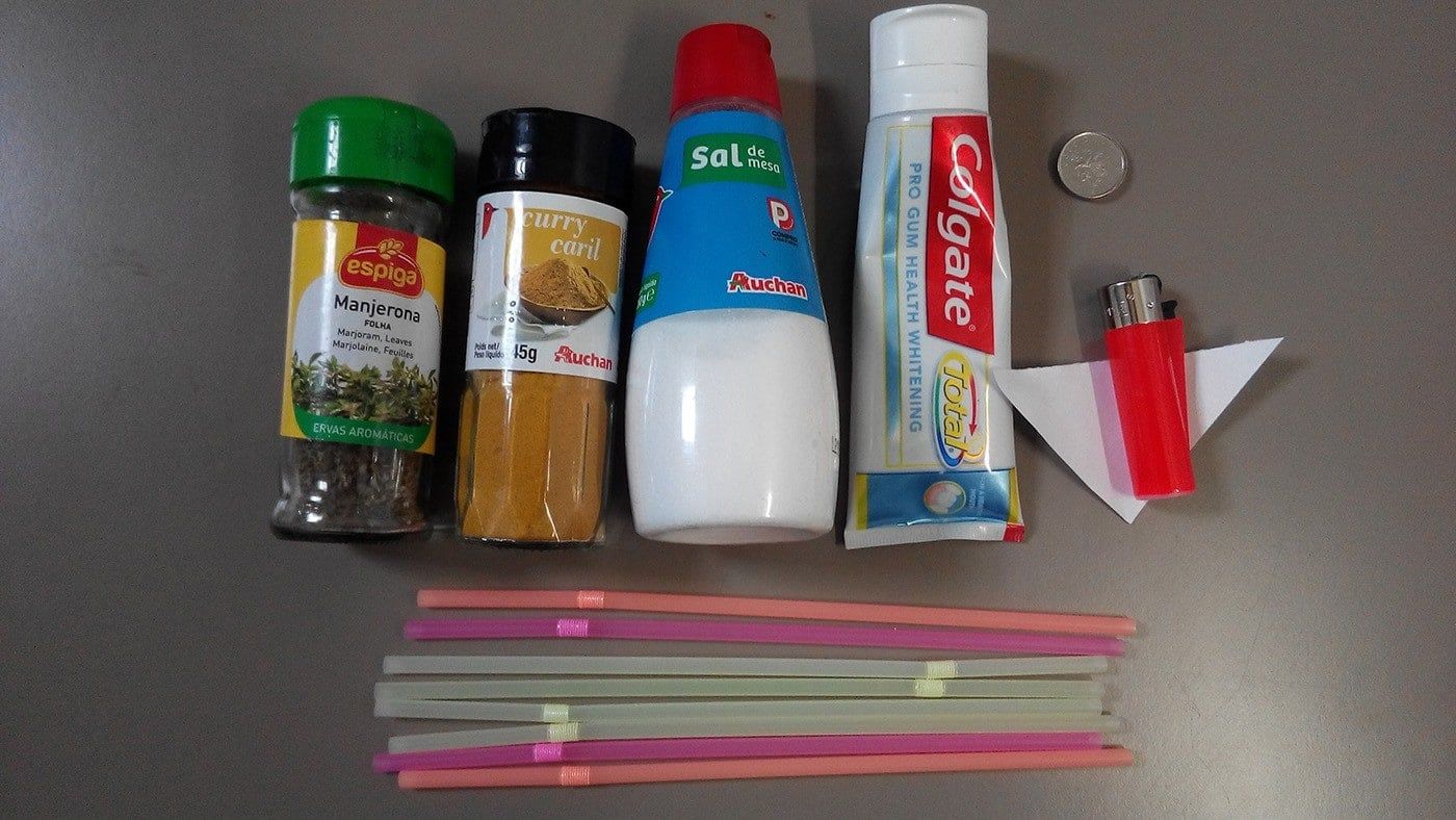 - Kousek papíru (na vytvoření trychtýře a přesypání sypkého obsahu do brčka)