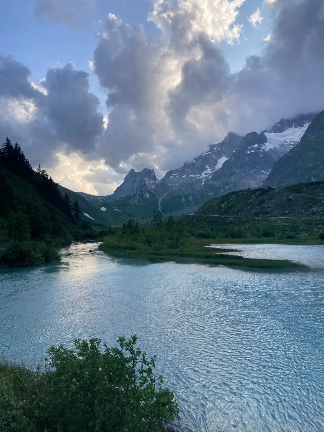 Cesta kolem jezera na treku Tour du Mont Blanc