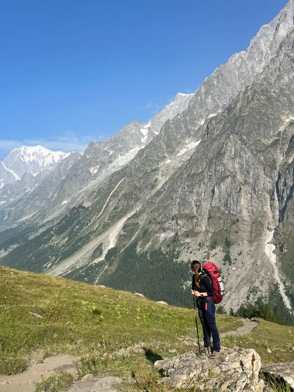 Výhled na masiv Mont Blanc během treku