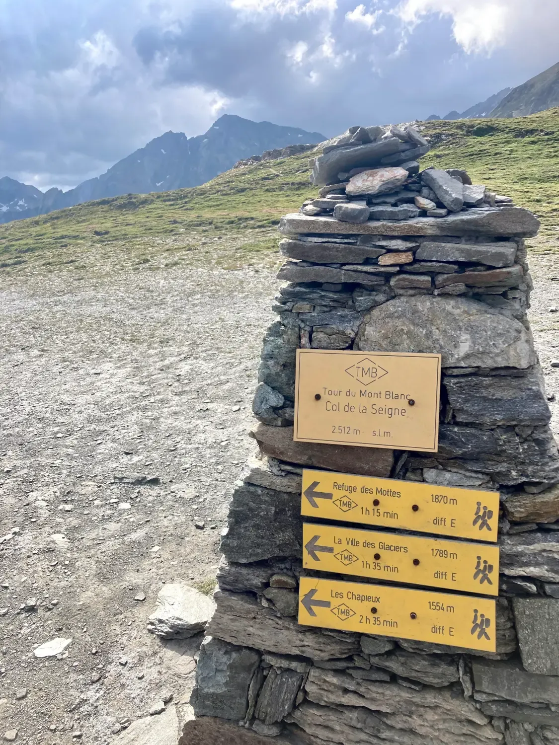 Rozcestník na trase Tour de Mont Blanc