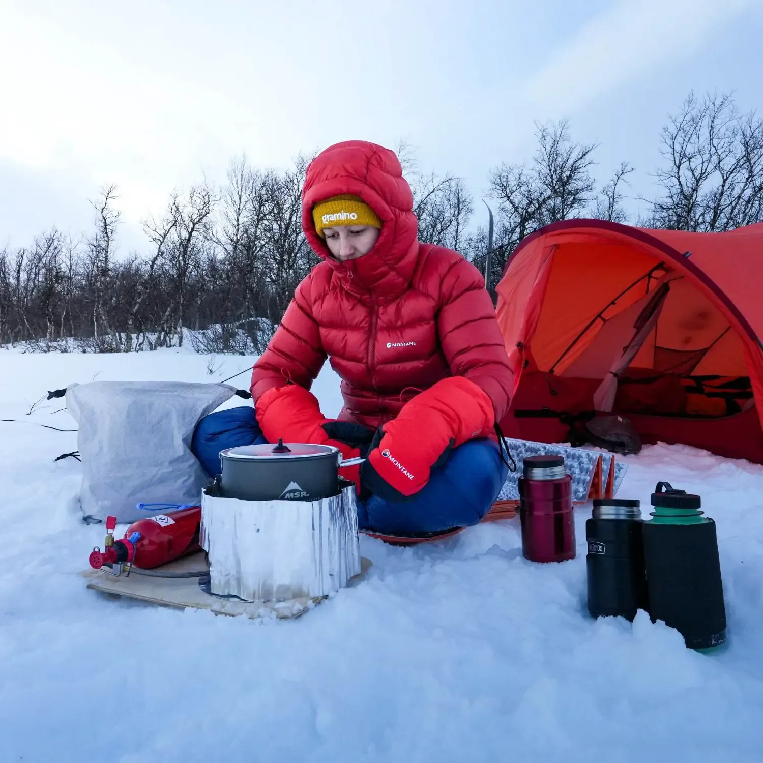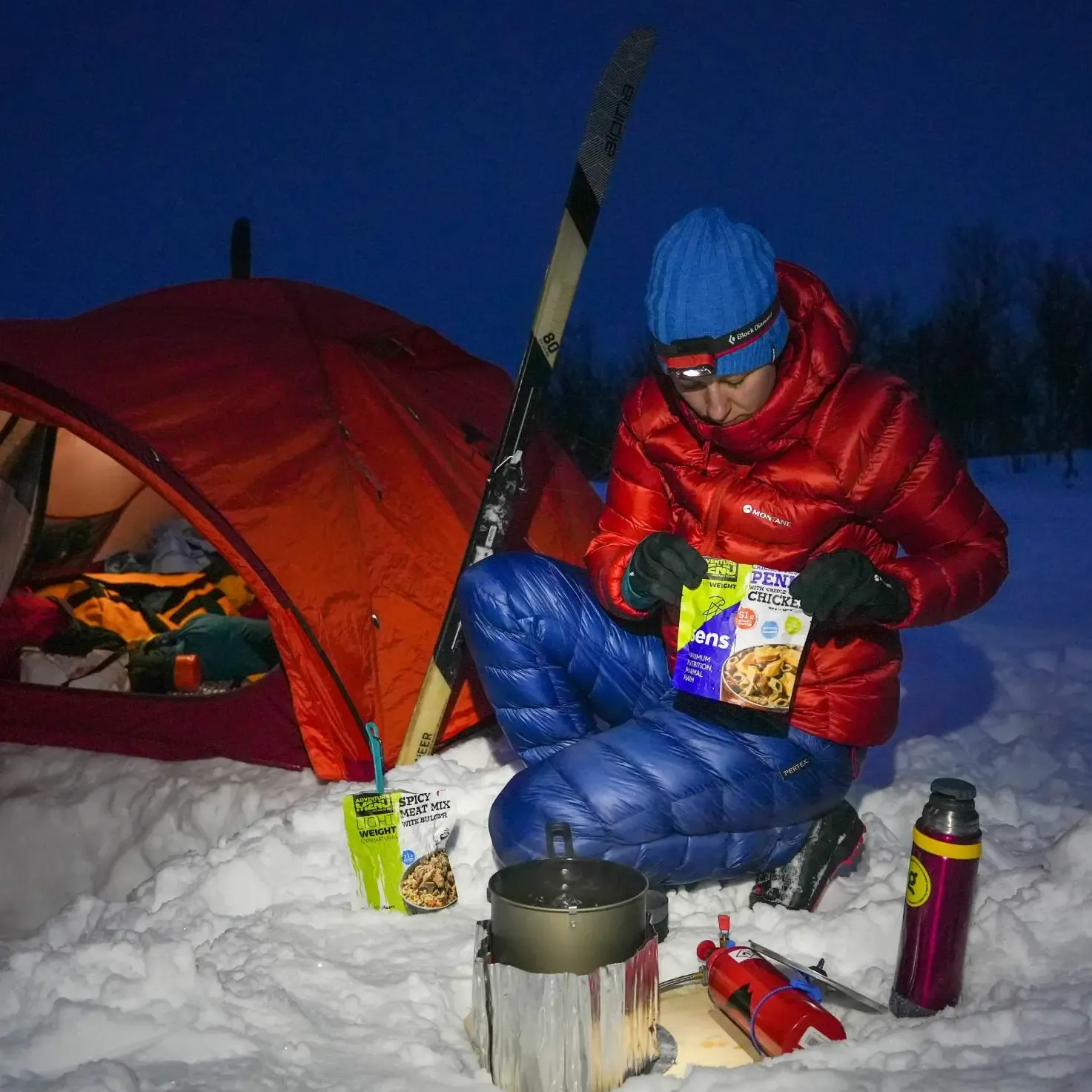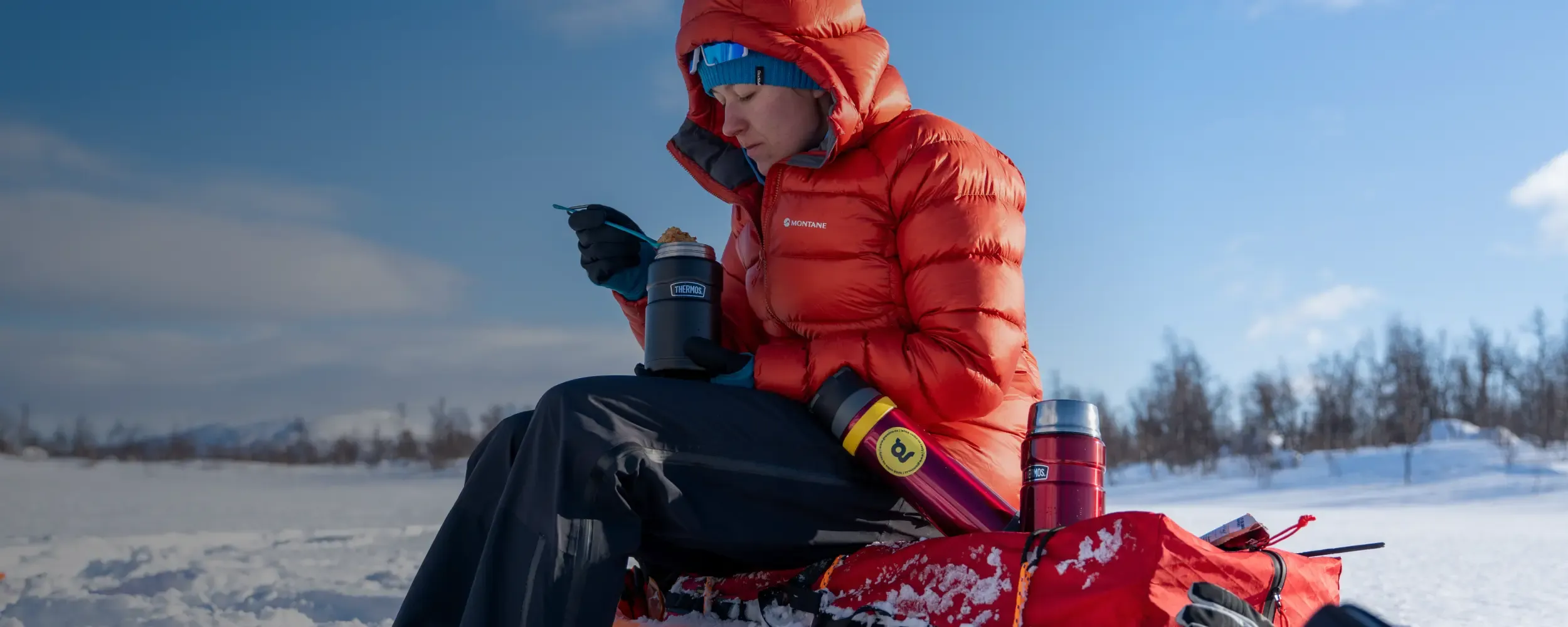 - Vař 1–2x denně (ráno a/nebo večer). V zimě je ideální si připravit teplé jídlo i pití hned ráno nebo už večer předem a uložit je do kvalitních termosek (např. od značky Thermos). Díky tomu nemusíš přes den zastavovat, rozdělávat vaření a znovu roztápět sníh – šetříš tak nejen palivo, ale i tvůj čas a energii.