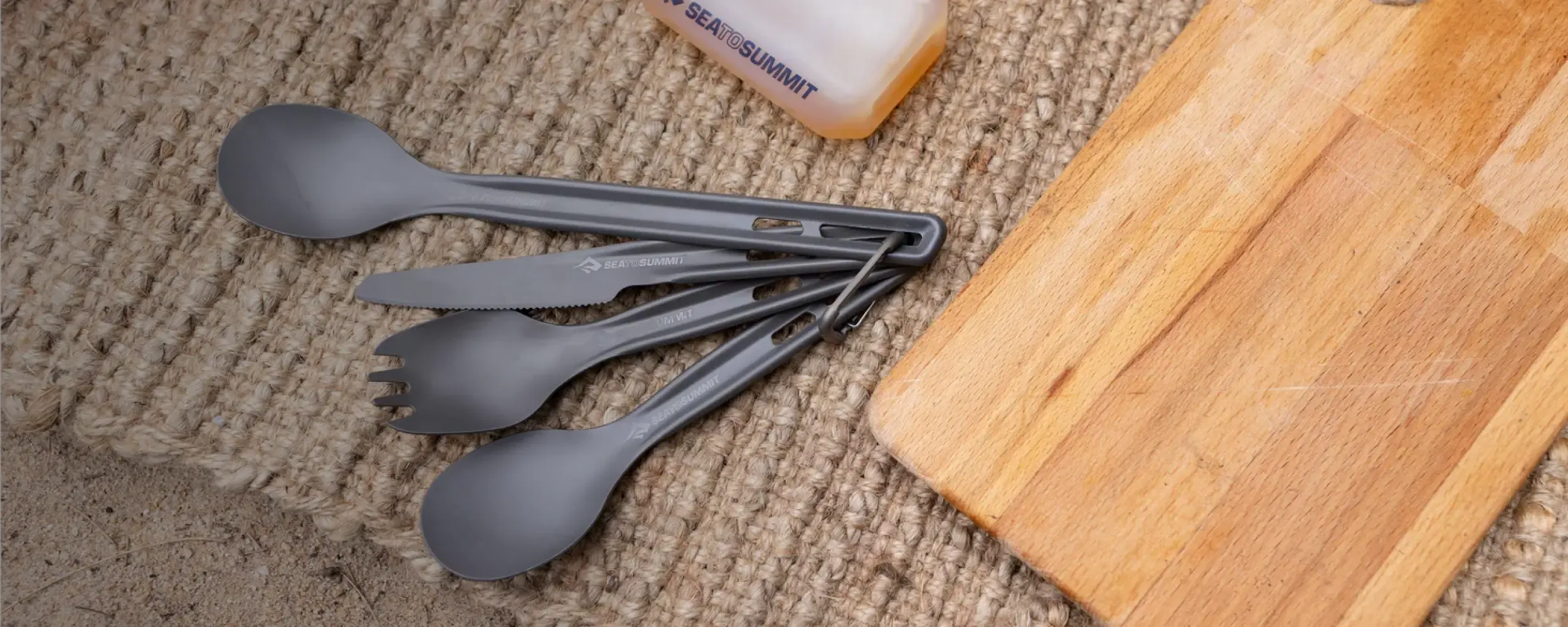 V naší nabídce máme různé délky a materiály příborů – od hliníkových a titanových modelů až po odolné plastové varianty, které jsou šetrné k nádobí s nepřilnavým povrchem. Pokud si vaříš přímo v hlubokých hrncích nebo jíš dehydratovaná jídla rovnou z obalu, oceníš dlouhou lžíci, se kterou se dostaneš až na dno bez umazaných rukou. Pro opravdové minimalisty jsou tu sporky – kombinace lžíce a vidličky s ozubeným okrajem, které zastanou funkci i lehkého nože.