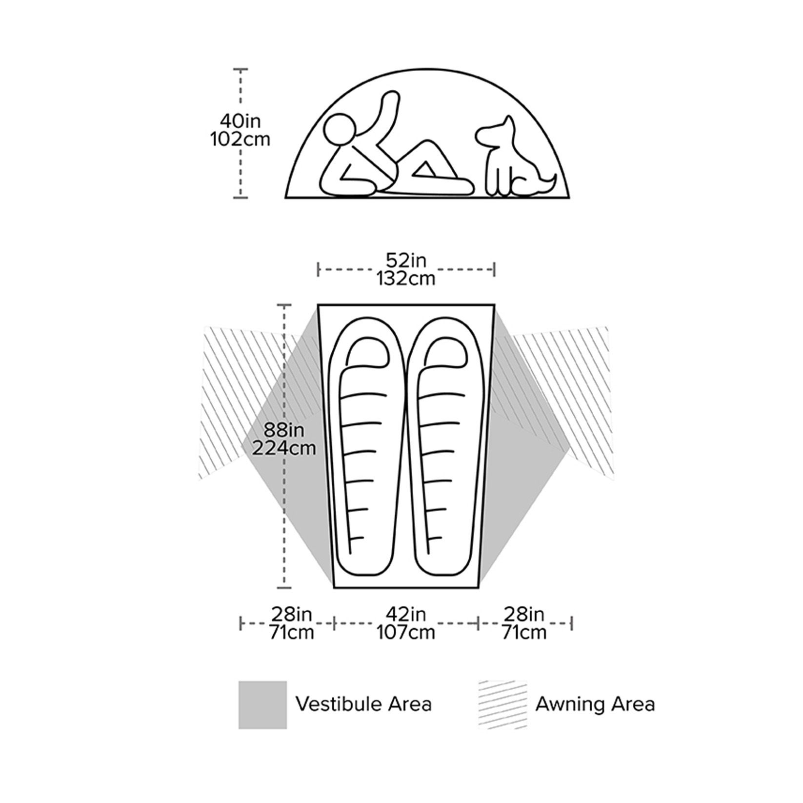 Stan je určen pro dvě osoby a má dva vchody a dvě předsíňky. Oba spáči tak mají svůj vchod a dostatečný prostor pro vybavení. Všechny zipy mají dva jezdce a jsou opatřeny ergonomickými taháčky. Tropiko má zipy chráněné krycí légou se suchými zipy.