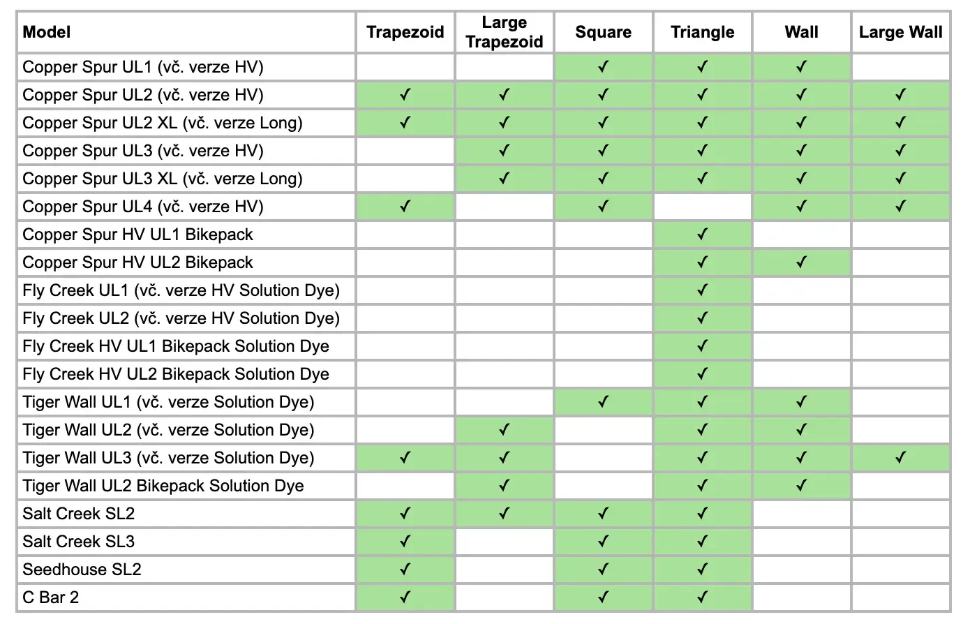 Zkontroluj si, prosím, kompatibilitu organizéru se svým stanem v tabulce.