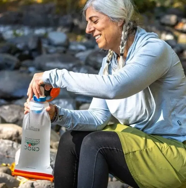 Láhev CNOC Vecto je skvělým doplňkem k filtrům Katadyn. Na její hrdlo se závitem o šířce 42 mm bez problému našroubuješ filtry Katadyn BeFree i všechny varianty dle objemu původní lahve. Láhev má dvojité otevírání. Pomocí širokého otvoru na druhé straně jednoduše nabereš vodu i z mělkého zdroje během chvilky. Při filtrování můžeš láhev mačkat a narozdíl od klasických PET lahví se nijak nedeformuje. Láhev můžeš jednoduše vyčistit.