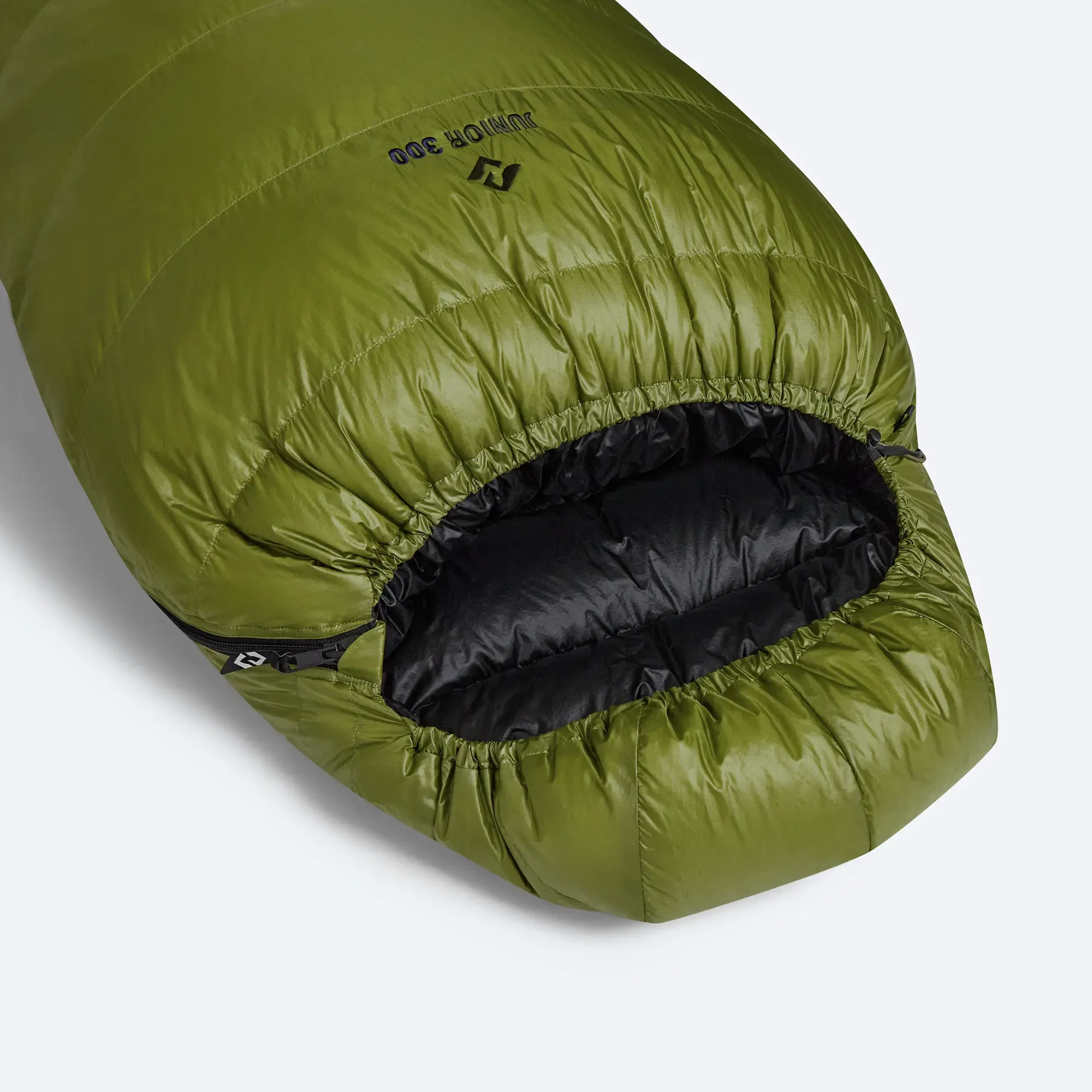 Spacák používá komorové provedení ve tvatu H, které zabraňují vzniku „chladných míst“ v místě šití dvou komoru. Šířka spacáku v ramenou je 65 cm a 50 cm v bocích. Junior 300 je vhodný pro děti s výškou maximálně 145 cm. Celková délka spacáku je 165 cm. Konstrukce oblasti chodidel (foot box) s názvem Shark-fin zabraňuje kompresi peří, je pohodlná a poskytuje lepší tepelný výkon než běžné konstrukce.