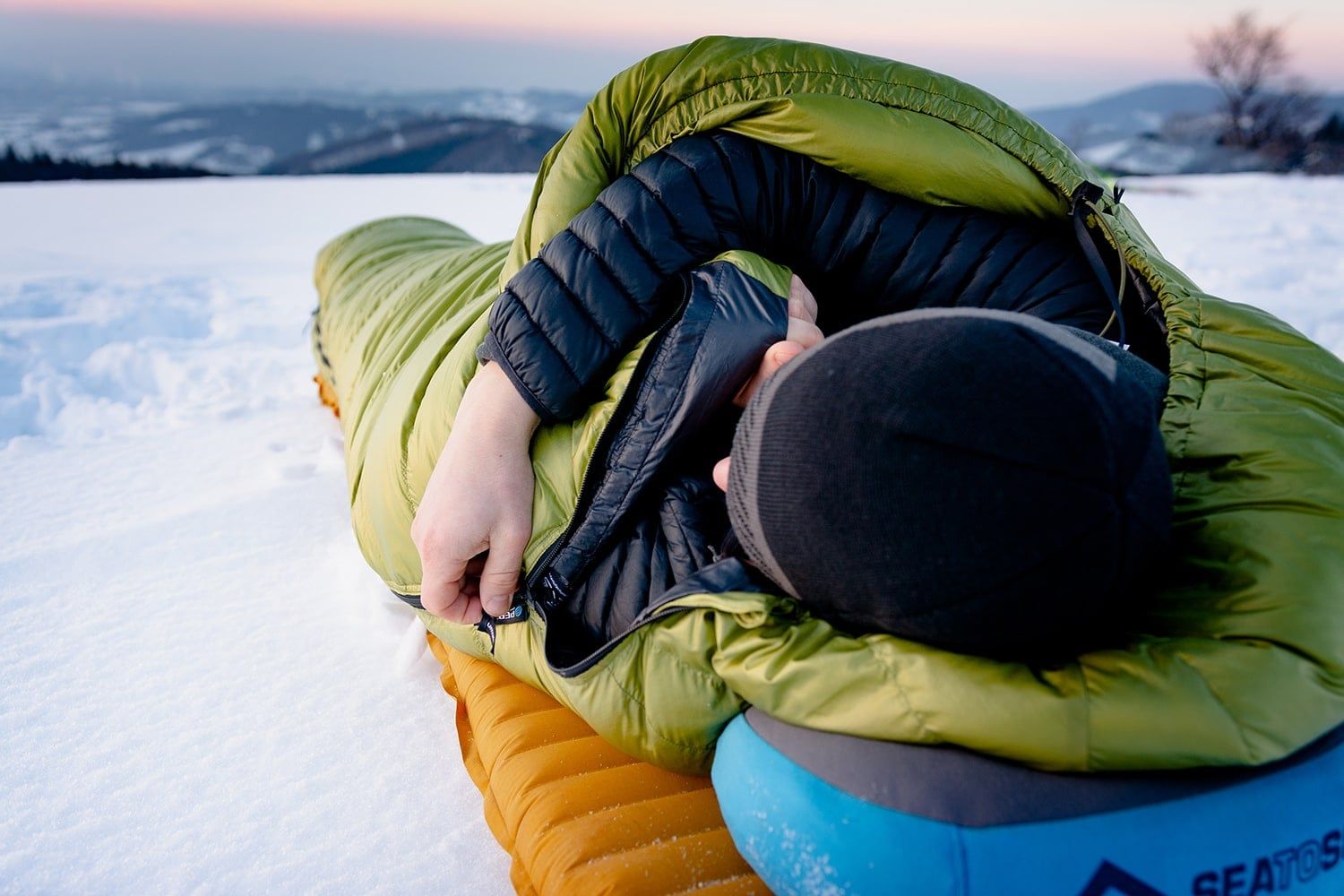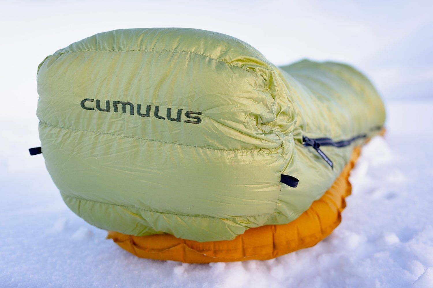 Spacák má 175 cm dlouhý YKK zip s rozšířeným jezdcem, aby nedocházelo k jeho zasekávání do látky při zapínání. U nohou pak najdeš druhého jezdce, které je ideální pro větrání. Za zipem je na vnitřní straně podélná komora naplněná peřím, která minimalizuje únik tepla přes samotný zip. Dva spacáky Cumulus s opačným zipem (levý + pravý) jdou spojit dohromady.