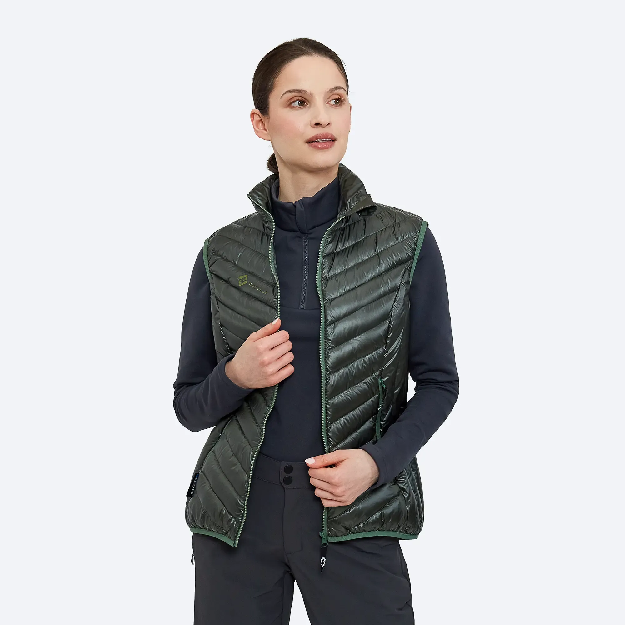 Cumulus Minilite Lady je lehká a skladná dámská péřová vesta, která může sloužit jako další izolační vrstva a udrží tě v teple za každých okolností. Je prodyšná a příjemná. Dvě kapsy na zip a přiléhavý límec umožňují pohodlné nošení při jakékoli příležitosti.