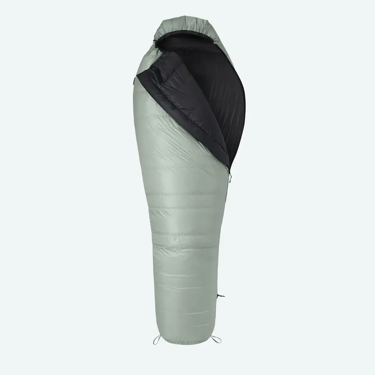 Na konstrukci spacáku je použita odolnější látka Pertex® Quantum 35 g/m² (20-denier ripstop), která dobře kombinuje hmotnost, odolnost, prodyšnost a sbalitelnost. Na vnější straně je látka opatřena trvalou voděodpudivou vrstvou DWR, která zadrží lehkou kondenzaci vzdušné vlhkosti či pár kapek vody.