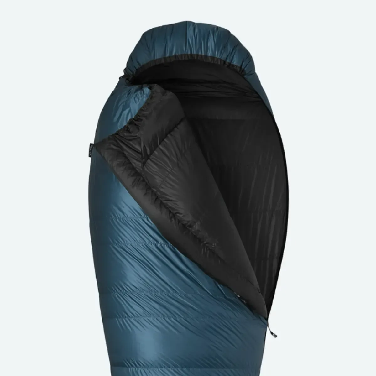 Pro jednoduchou orientaci je stahování kapuce a límce odlišeno, kapuci stahuješ plochým popruhem a límec gumičkou. Spacák má samostatný límec naplněný peřím se suchým zipem, který obepne tvůj krk z obou stran a zabrání únikům tepla přes kapuci. Uvnitř spacáku je síťová kapsa na mobil, špunty do uší či jiné drobnosti.