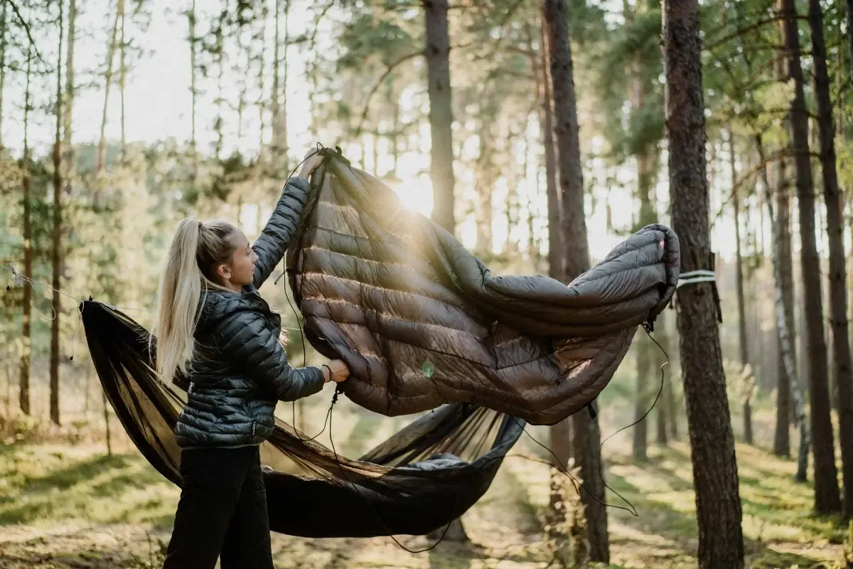 Selva 300 je takzvaný underquilt, tedy přikrývka navržená tak, aby se zavěsila pod hamaku a chránila před chladem zespodu. Na rozdíl od spacáku není peří v underquiltu stlačené, takže lépe izoluje a udržuje teplo při spaní venku. Přikrývku můžeš využít také jako péřovou deku, například na chatách.