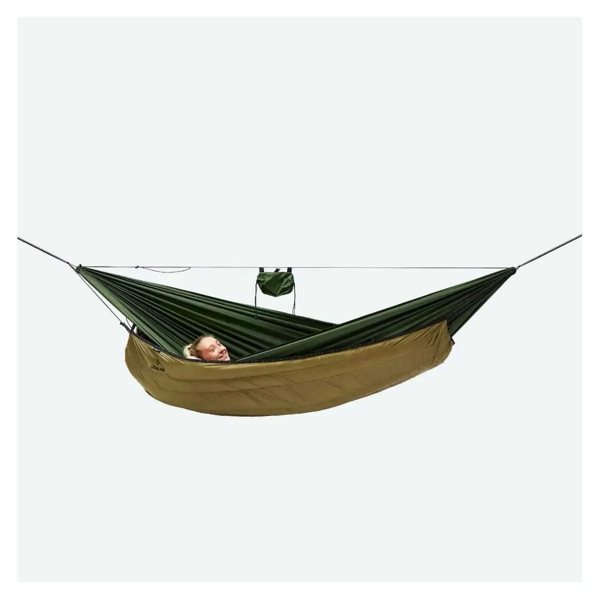 Lehký a promyšlený péřový underquilt, určený pro pohodlné spaní v hamace. Tato přikrývka se zavěšuje pod hamaku jako tepelná izolace zespodu. Ideální pro letní podmínky a teplejší jarní nebo podzimní noci. Vhodné pro uživatele s maximální výškou 185 cm. Underquilt je dodáván včetně úložného vaku.