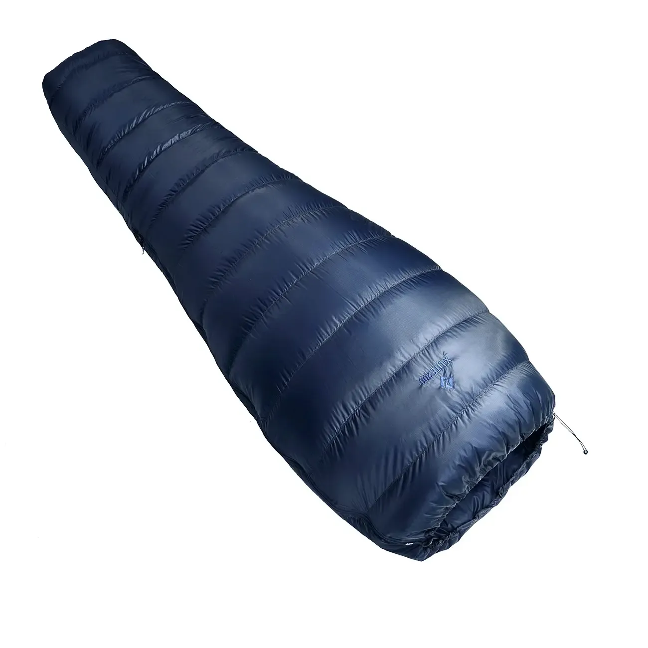 Náplně zde tvoří 200 gramů husího prachového peří s plnivostí 900 cuin! Poměr prachového peří k malým pírkům je 95/5. Horní komory jsou odděleny od spodních a jsou naplněny o píď větším množstvím peřím. Peří je zde rozděleno v poměru je 55/45. Hmotnost konstrukce spacáku bez peří je směšných 150 gramů, celkově pak váží 350 gramů.