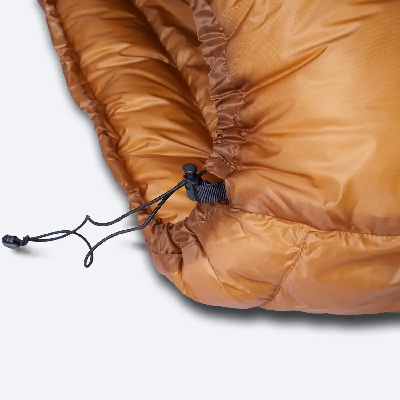Spacák nemá kapuci, při tomto teplotním rozsahu lze kapuci nahradit čepicí nebo kapucí od péřovky, u spacáku byla tedy odstraněna. Konstrukce oblasti chodidel (foot box) s názvem Shark-fin zabraňuje kompresi peří, je pohodlná a poskytuje lepší tepelný výkon než běžné konstrukce.