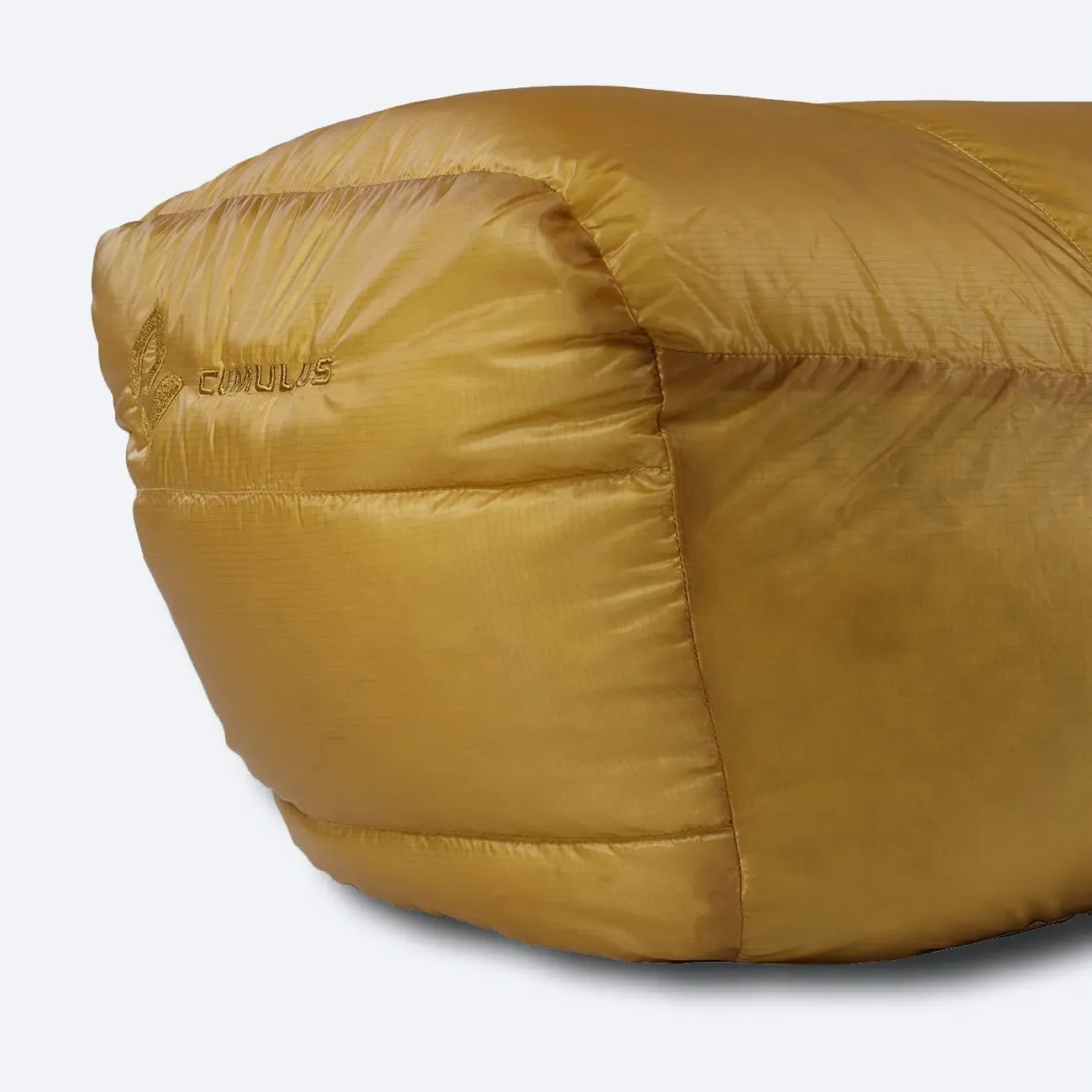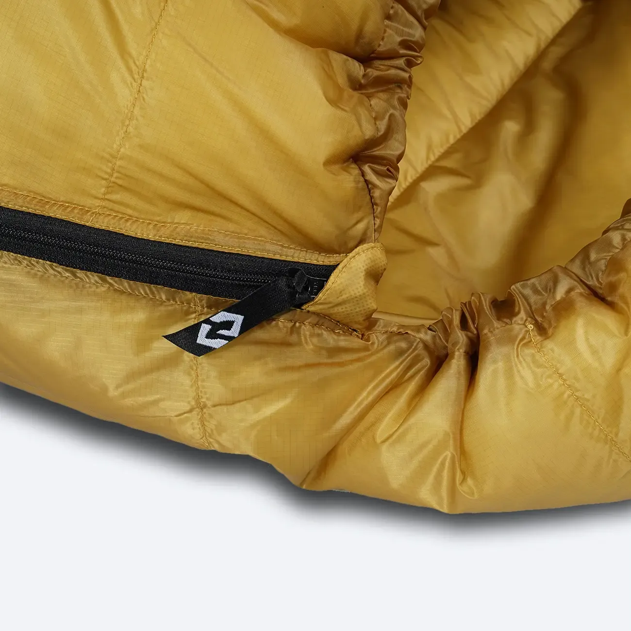 Náplně zde tvoří 300 gramů husího prachového peří s plnivostí 900 cuin! Poměr prachového peří k malým pírkům je 95/5. Horní komory jsou odděleny od spodních a jsou naplněny o píď větším množstvím peřím. Peří je zde rozděleno v poměru je 55/45. Hmotnost konstrukce spacáku bez peří je směšných 165 gramů, celkově pak váží 465 gramů.