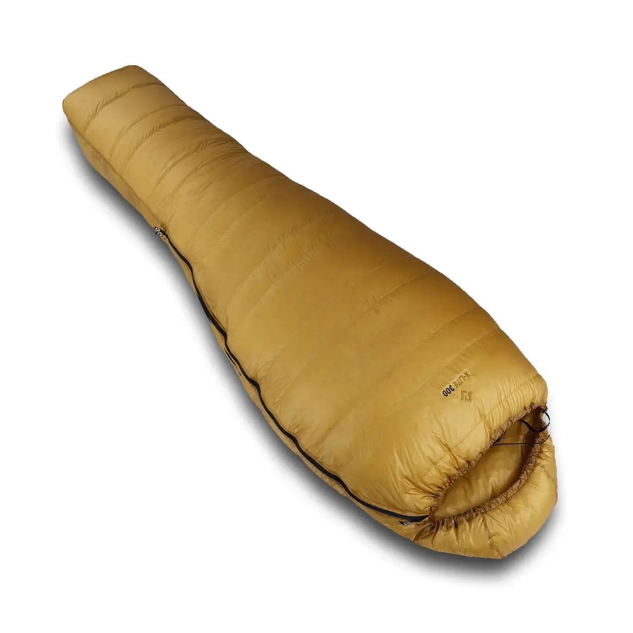 hmotnost peří 300 g, husí peří, plnivost 900 cuin, třísezónní, materiál Toray Airtastic s DWR, mumiový tvar, trapézová konstrukce komor, kapuce a límec se stahováním, YKK zip ve 2/3 délce se dvěma jezdci, podélná péřová komora za zipem, konstrukce footboxu Shark-fin, rozložení peří v komorách 55:45, součástí balení skladovací vak a cestovní obal o objemu 4,2 l
