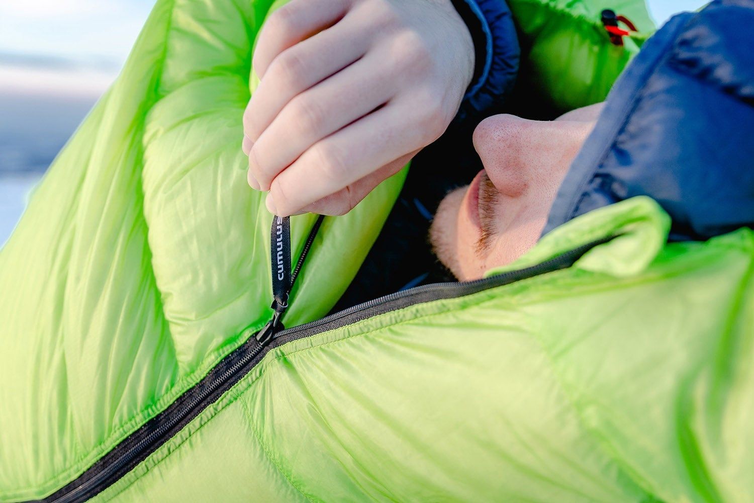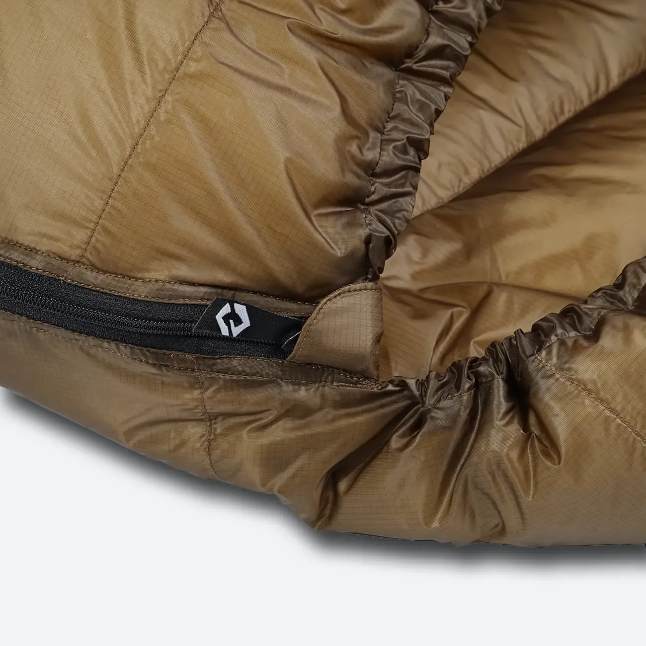 Zip spacáku má dvoutřetinovou délku a je opatřen dvěma jezdci pro možnost ventilace. Na vnitřní straně za zipem je podélná komora, aby nedocházelo k tepelným ztrátám.