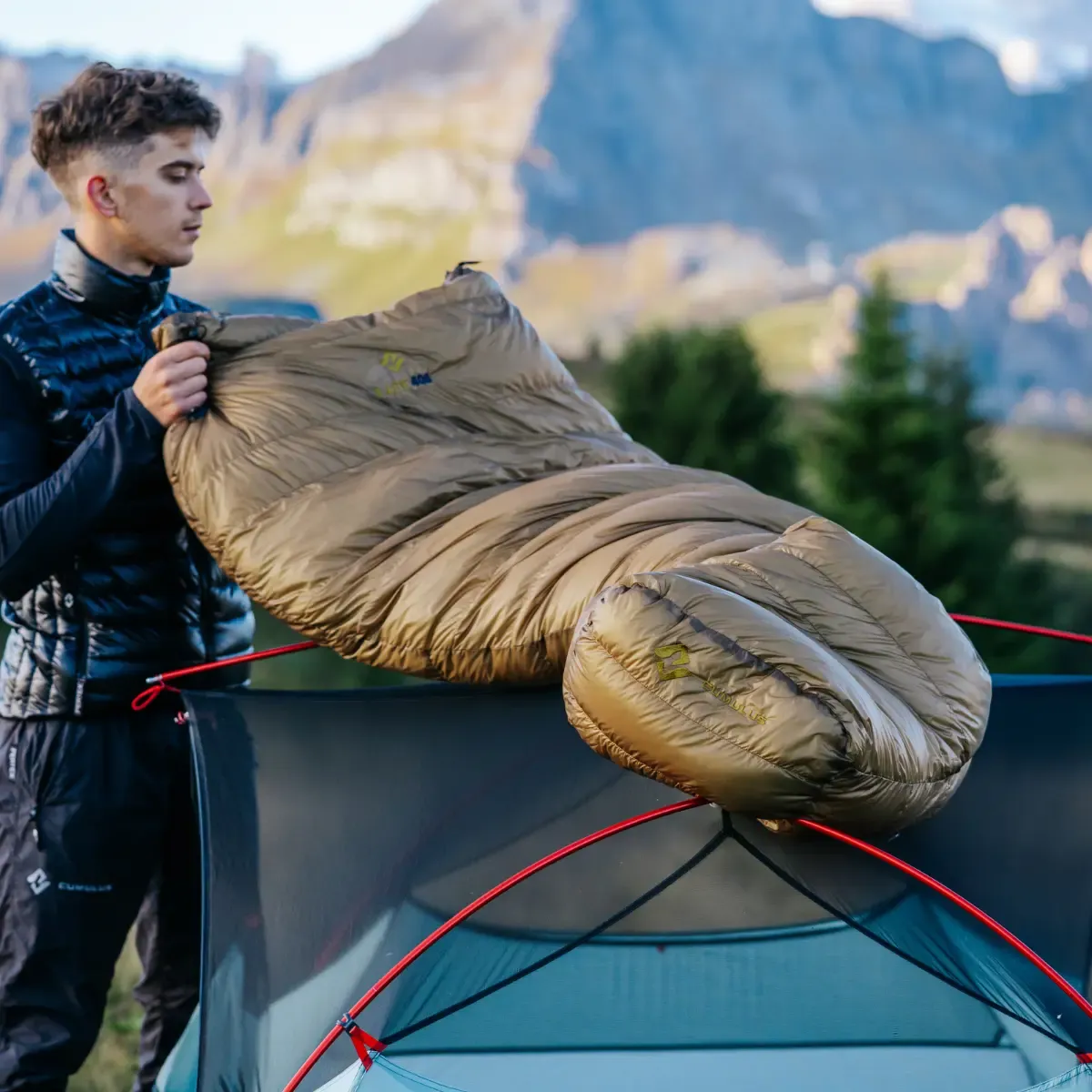 Na tělo spacáku je použita ultralehká a dobře sbalitelná látka Toray Airtastic 19 g/m². Je to jedna z nejlehčích látek na světě, z které neuniká prachové peří a má dostatečnou odolnost pro použití ve spacácích. Je dobře prodyšná, větruodolná a velmi příjemná na dotek. Na vnější straně je látka opatřena trvalou voděodpudivou vrstvou DWR, která zadrží lehkou kondenzaci vzdušné vlhkosti či pár kapek vody. Díky použitému odstínu látky můžeš dokonce vidět peří ve spacáku.