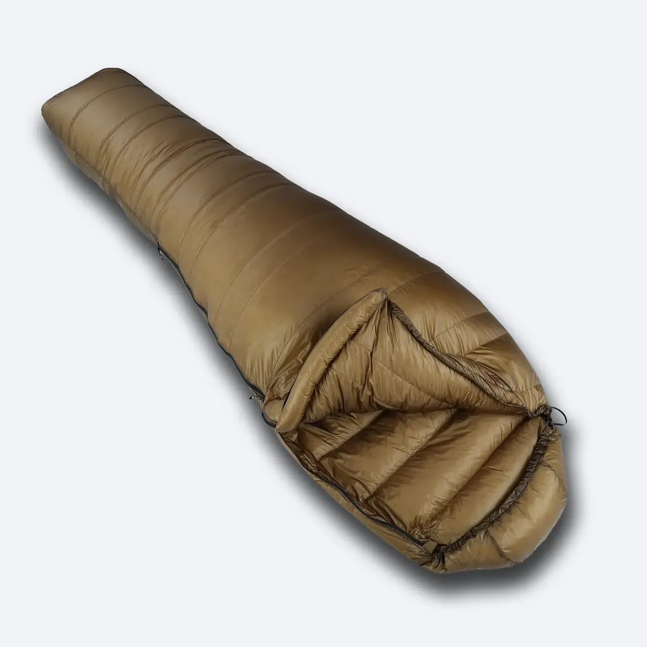 Náplně zde tvoří 400 gramů husího prachového peří s plnivostí 900 cuin! Poměr prachového peří k malým pírkům je 95/5. Horní komory jsou odděleny od spodních a jsou naplněny o píď větším množstvím peřím. Peří je zde rozděleno v poměru je 55/45. Hmotnost konstrukce spacáku bez peří je směšných 175 gramů, celkově pak váží 575 gramů.