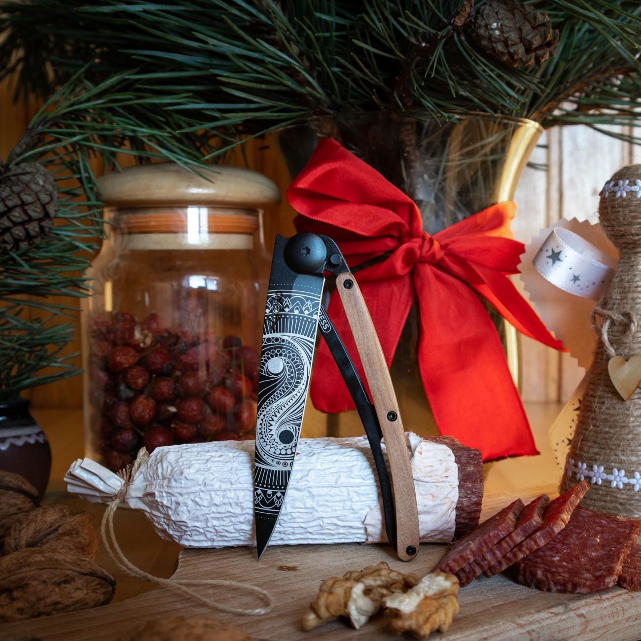 Série Black se vyznačuje elegantní černou barvou. Rukojeť je zde opatřena střenkou z olivového dřeva. Díky tetovanému motivu se zde skutečně naplní to, co deejo nese ve svém sloganu – ”Nůž, který se ti podobá.” Spolehlivá pojistka zajišťuje, že se nůž v otevřené poloze při manipulaci neuzavře. Pomocí spony na zadní straně nože můžeš nůž připevnit k opasku nebo třeba ramennímu popruhu batohu a mít ho vždy po ruce. Největší verze 37 g je perfektní volbou pro ty, co na svých cestách vyžadují maximální komfort při krájení. Nůž je dodáván ve vzhledné krabičce, takže je ideální i jako dárek.