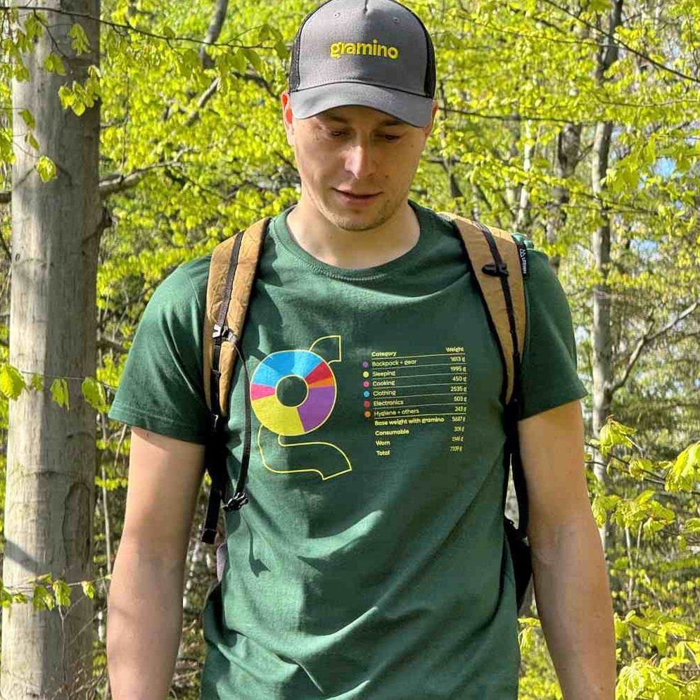 Kvalitní a pohodlné bavlněné tričko s motivem gear listu a naší značky Gramino pro všechny gear nerdy a nadšence ultralightu. Tohle tričko ti bude dělat radost při každodenním nošení, ať už zavítáš do práce, do města, na nákup nebo na pivo s kamarády.
