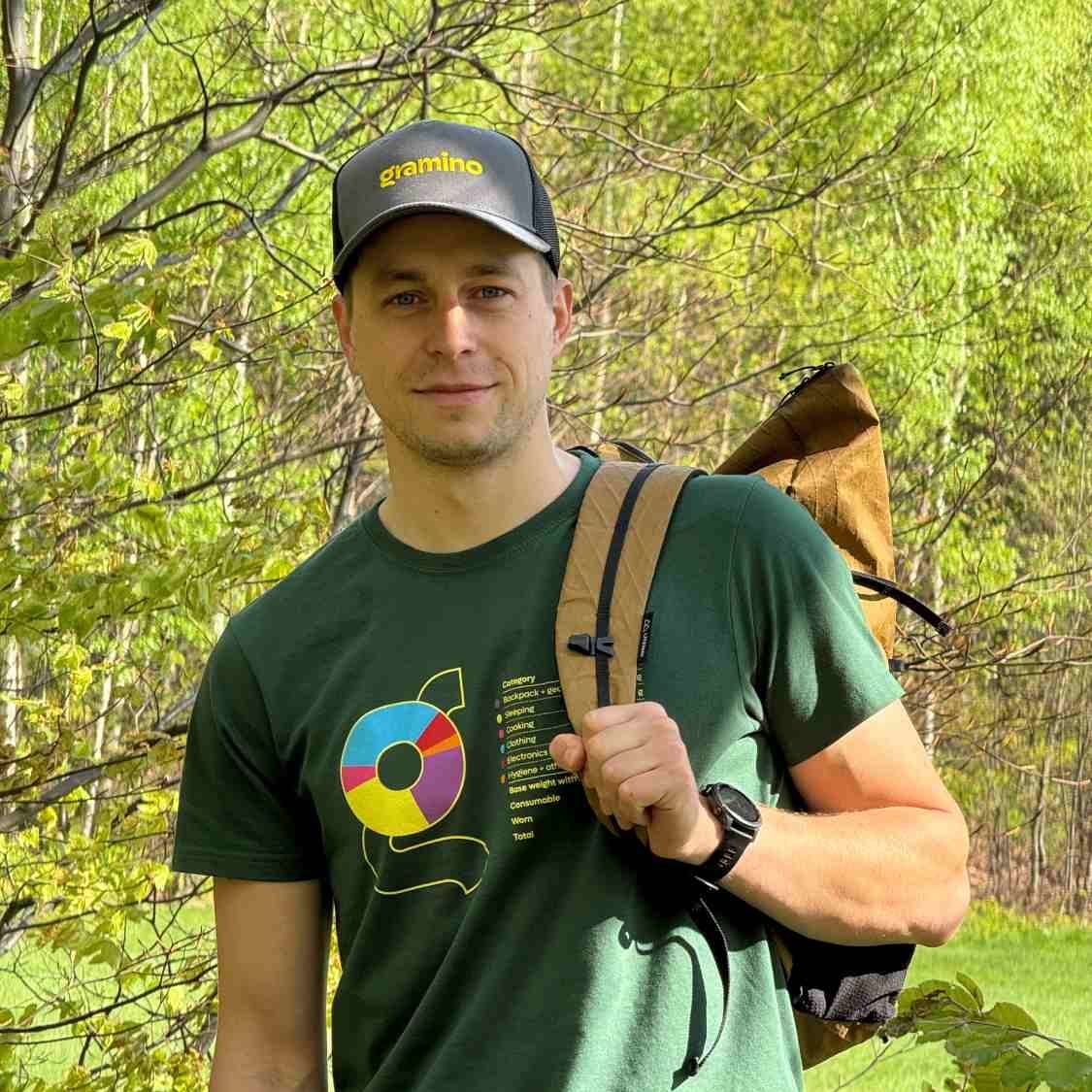 Tričko Gramino Gear List z naší vlastní dílny je inspirováno reálným seznamem vybavení, který jsme si sestavili v naší oblíbené aplikaci LighterPack. Jde o výbavu, se kterou by ses nemusel bát vyrazit ani několik tisíc kilometrů dlouhý trail v teplotách do cca 0 °C. Co jsme zahrnuli do seznamu vybavení na tričku se základní hmotností (base weight) 5,7 kg? Podívej se zde a načerpej inspiraci pro vlastní gear list, najdeš tam i odkazy na jednotlivé položky.