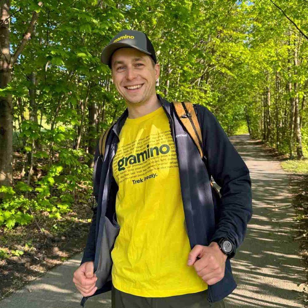 Tričko Gramino Trail Slang z naší vlastní dílny je inspirováno pojmy a slangovými výrazy, které můžeš slyšet v kontextu dálkových treků a ultralehkého vybavení. Vzadu na krku je symbol naší značky Gramino.