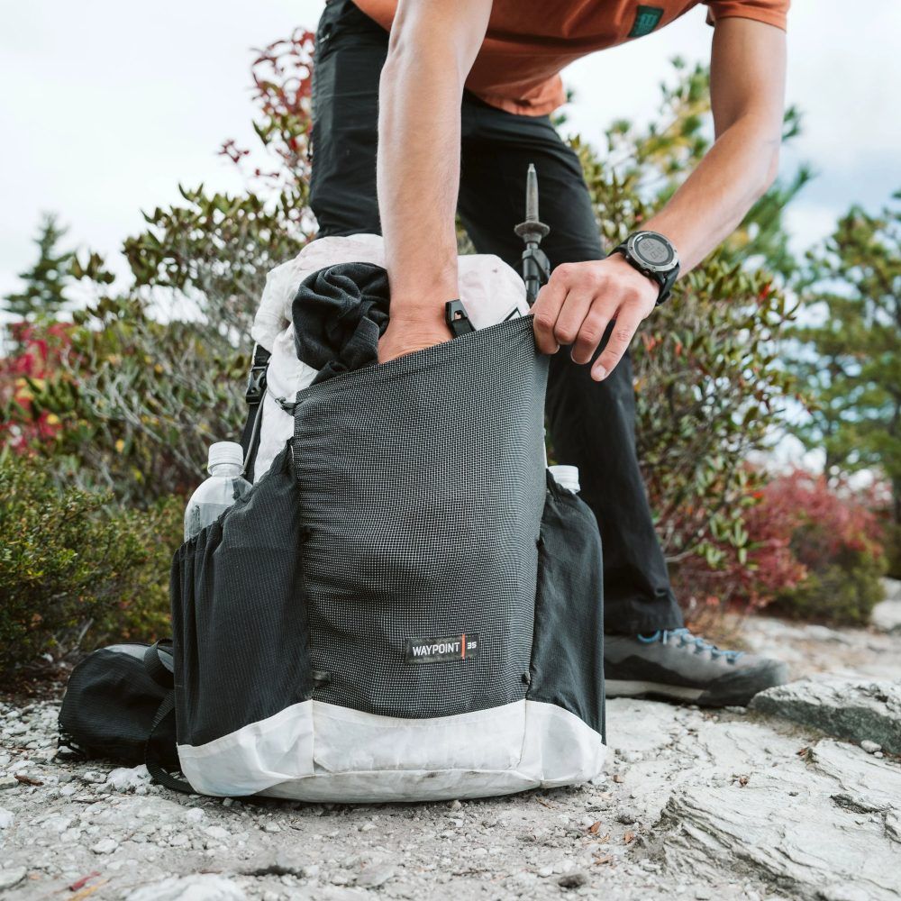 Vnitřní objem batohu Waypoint je 35 litrů, vnější kapsy pojmou další vybavení o objemu až 6,5 litrů. Z toho je jasné, že veškerá výbava už musí být do detailu promyšlená, skladná a odlehčená, aby ses do něj pohodlně sbalil i na několik dní až týdnů pěší chůze se vším potřebným. S vyladěnou ultralight výbavou a batohem Waypoint 35 ale zvládneš i kdejaký delší thru-hike s nošením jídla na cca 2–4 dny.