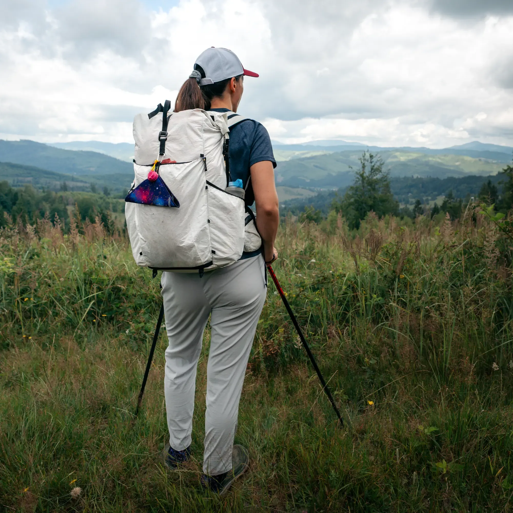Pevná klokaní kapsa – na zadní straně batohu je prostorná kapsa z odolného materiálu ULTRA. Je ideální na nepromokavou bundu, toaletní lopatku, kolíky a podobné vybavení. Další možnost pro připevnění lehkého vybavení/oblečení nabízí stahovací gumičky, které na vnější straně této kapsy. Gumičku můžeš jednoduše odejmout a nechat doma, nebo připevnit jinam.