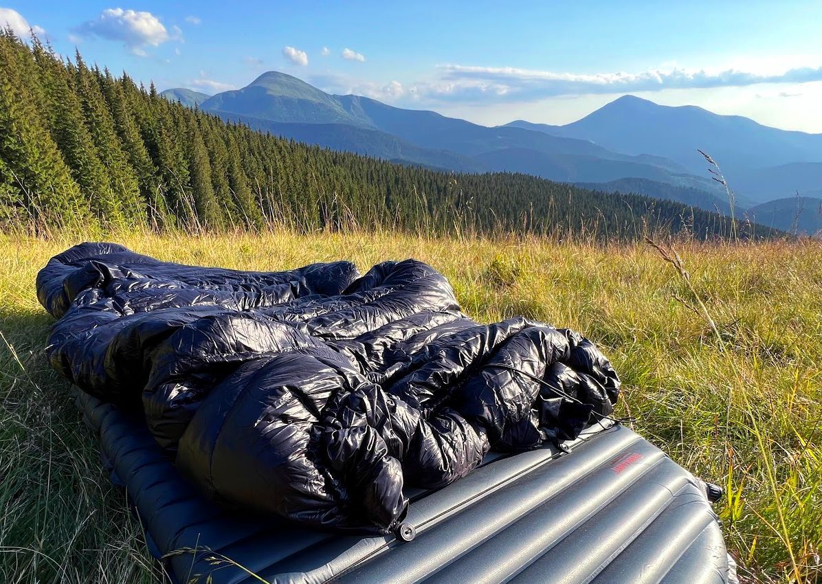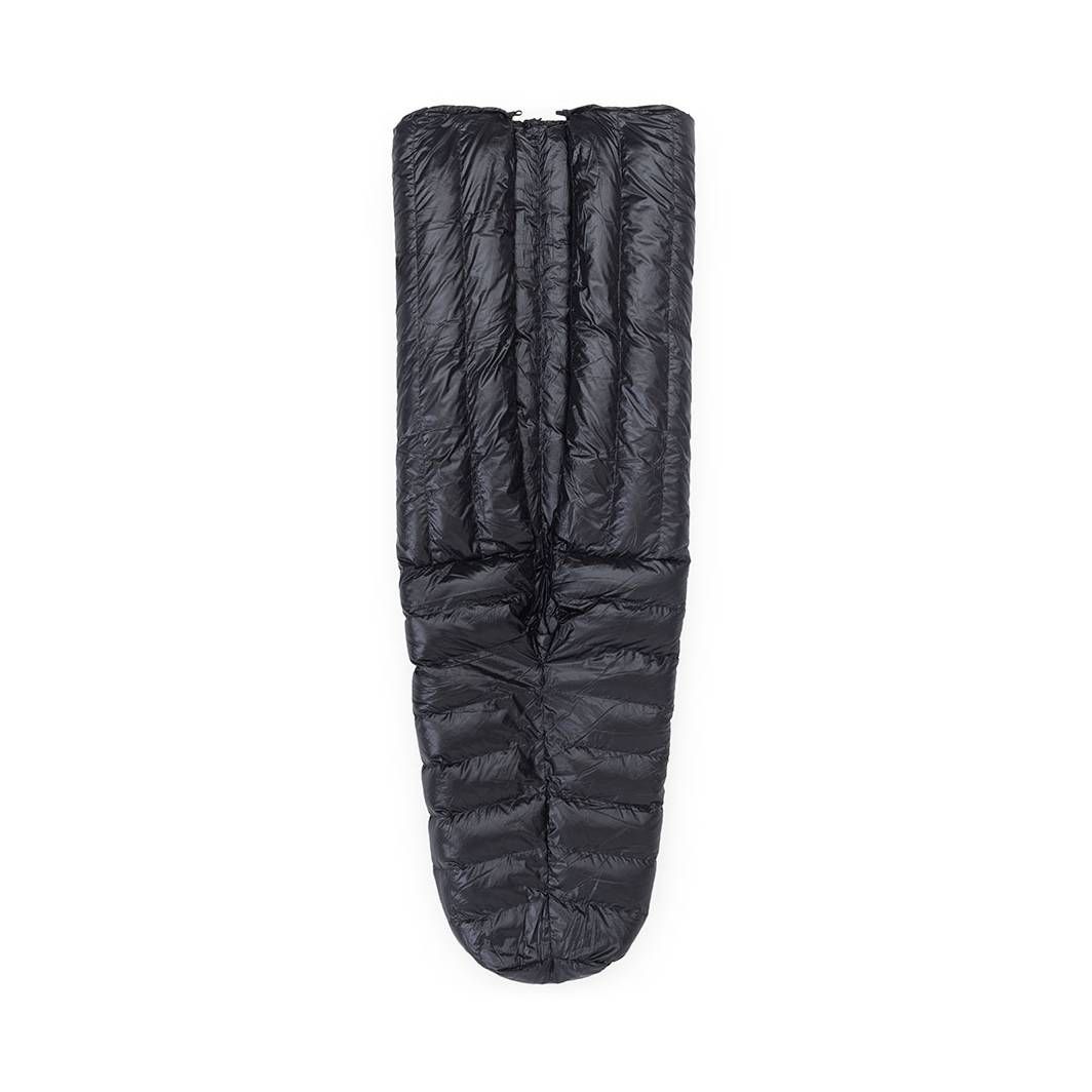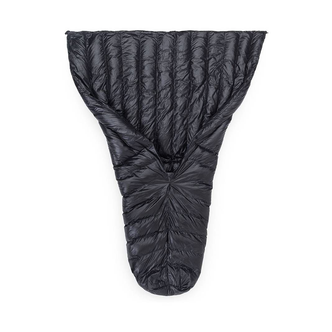 Pro úsporu hmotnosti a lepší skladnosti jsou quilty zbaveny všeho nepotřebného. Na jeho zadní straně od pasu nahoru je odstraněno neefektivně využité peří, které by bylo většinu času slehlé pod tvým tělem a prakticky by nemělo žádný význam. Aby otvor na zádech zůstal po celou dobu pod tebou, připevňuje se quilt ke karimatce pomocí elastických popruhů. Quilt zůstává celou dobu v základní poloze a ty se otáčíš v něm. Quilt lze používat s jakýmkoliv typem karimatky (nafukovací, pěnová). Quilt zároveň nemá kapuci, tu můžeš nahradit čepicí nebo péřovkou/mikinou s kapucí.