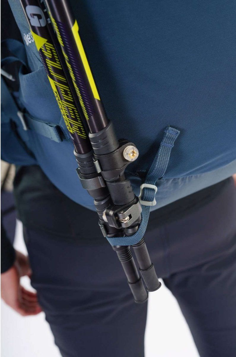 Na zadní straně batohu se nachází systém pro rychle připevnění trekových holí nebo cepínu.