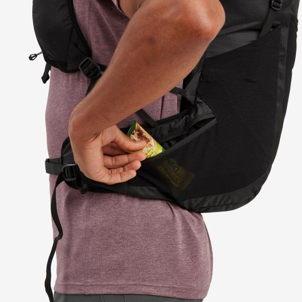 Pohodlný bederní pás má 2 snadno přístupné kapsy na zip vhodné na svačinu nebo peněženku. Dvě boční síťované kapsy umožňují rychlý přístup k lahvi s vodou.