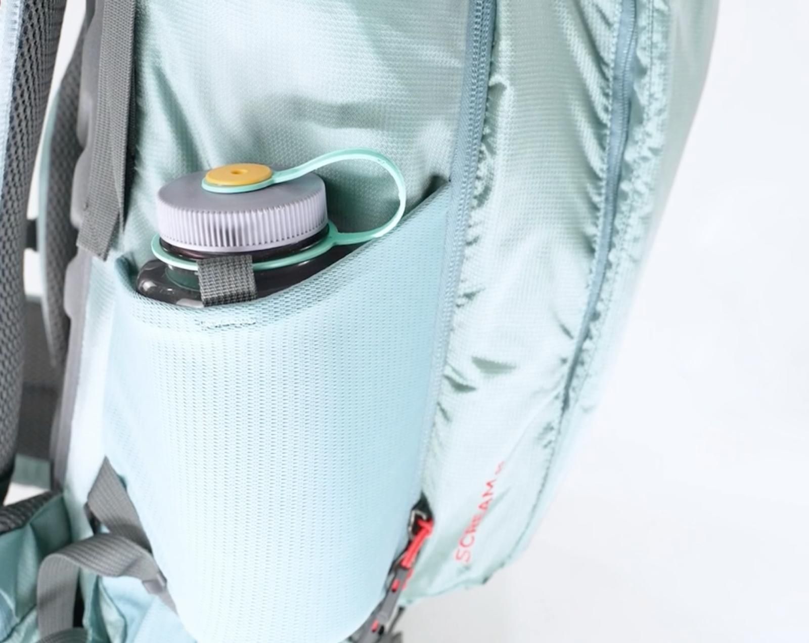 Po stranách batohu jsou kompresní popruhy a velké kapsy, které s přehledem pojmou dvě litrové láhve nebo jednu větší.
