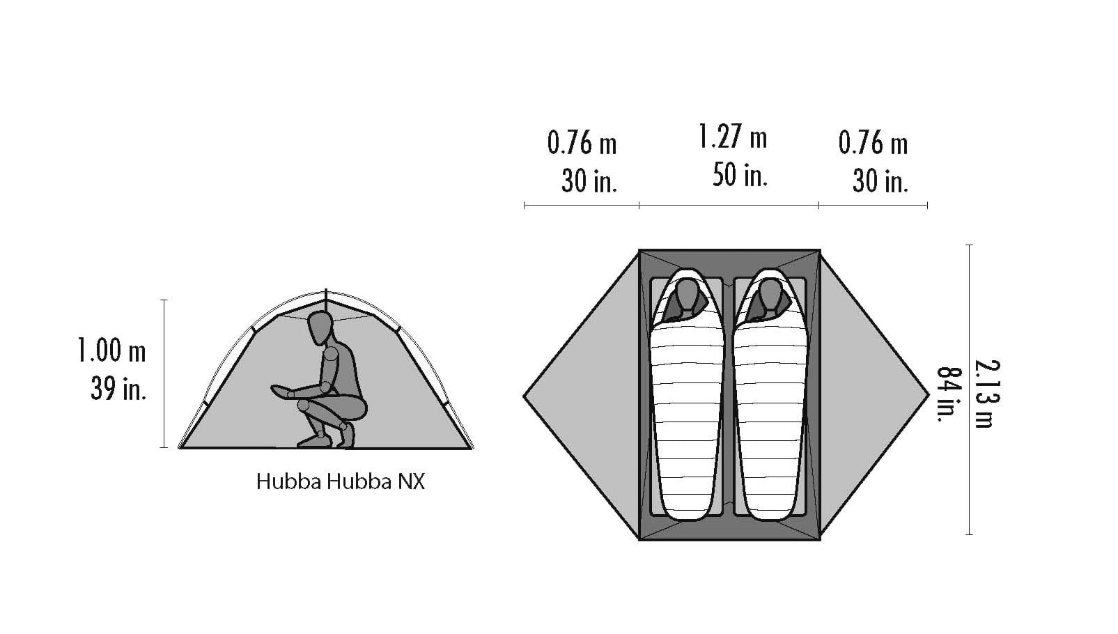 Hubba Hubba NX je lehký třísezónní stan pro dvě osoby. Nepatří sice mezi nejlehčí stany na trhu, za to ale poskytuje dostatečnou odolnost, 2 vchody a předsíňky, kde se dá odložit batoh a vařit. Díky jednoprutové konstrukci složíš stan během pár minut. V přední a zadní části stanu jsou větrací komory, aby ve stanu nedocházelo kondenzaci.