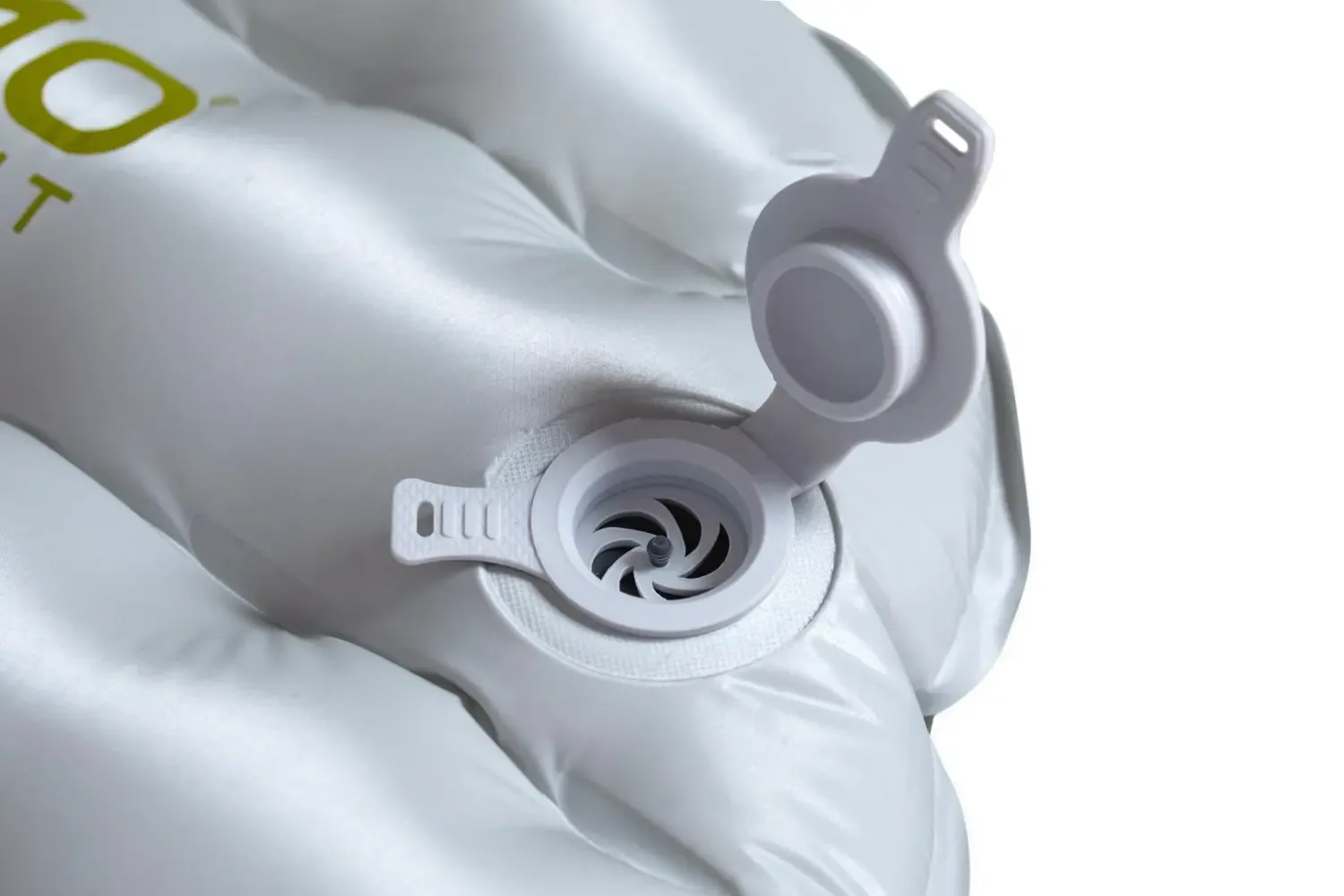 Plochý multifunkční ventil Laylow™ pro snadné nafouknutí, rychlé vyfouknutí, ale i jemné doladění tlaku vzduchu uvnitř karimatky.