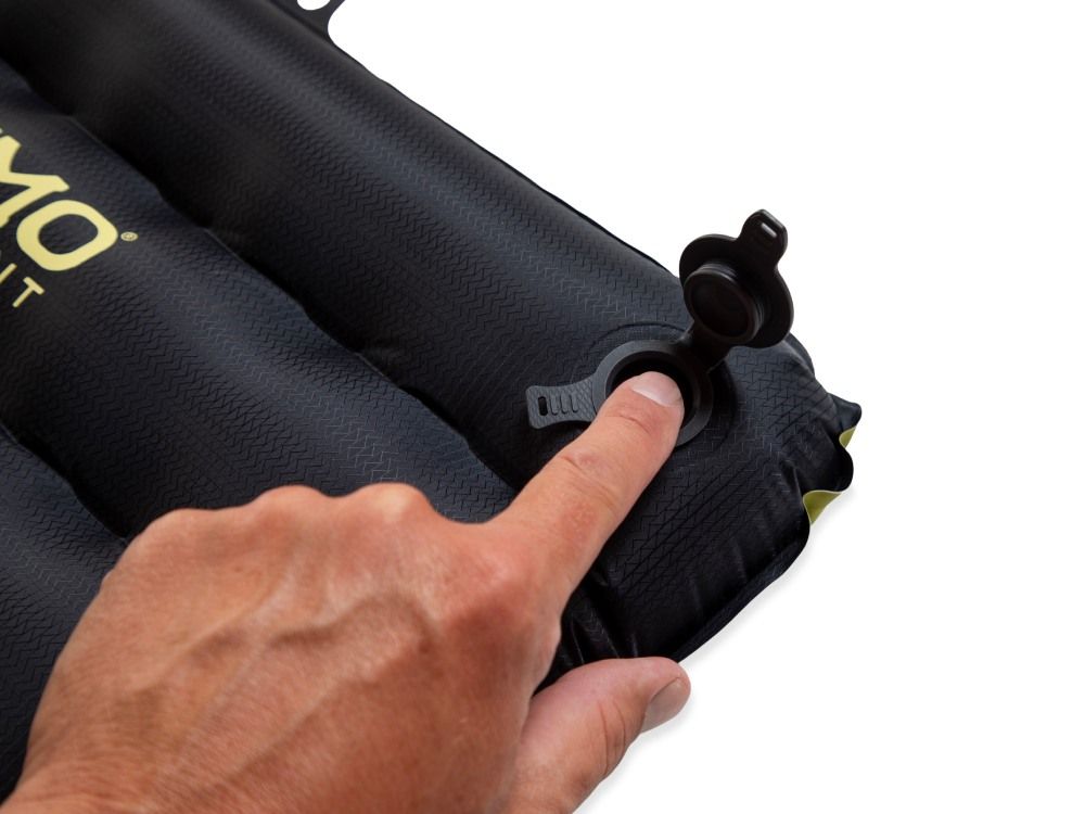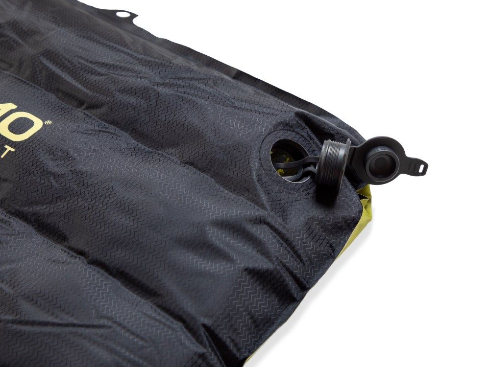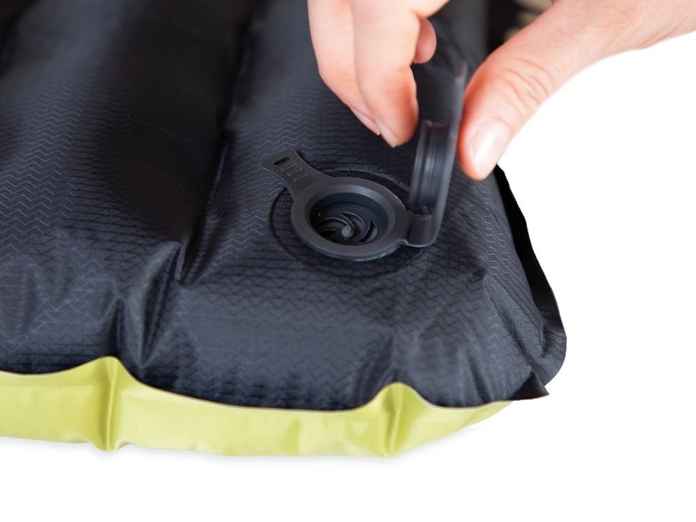 Plochý multifunkční ventil Laylow™ pro snadné nafouknutí, rychlé vyfouknutí, ale i jemné doladění tlaku vzduchu uvnitř karimatky.