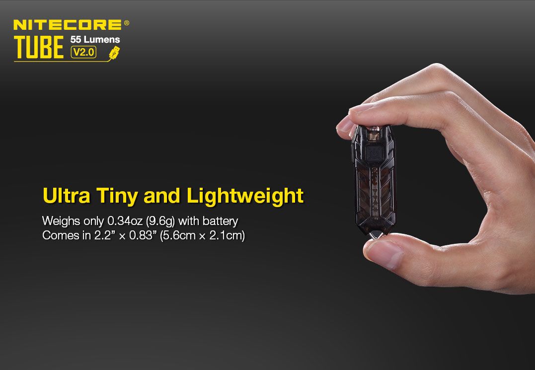 Nitecore TUBE 2.0 je miniaturní, ultralehká, ale výkonná USB dobíjecí klíčová svítilna s výkonem až 55 lumenů. Tělo svítilny je vyrobeno z velmi odolného polykarbonátu a je opatřeno nerezovým klíčovým kroužkem, kterým si ji můžeš kdekoliv a mít ji tak neustále na dosah ruky.