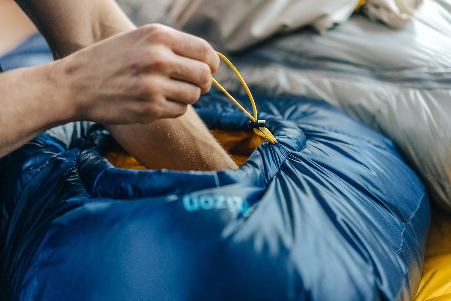 Vychytaná konstrukce v oblasti nohou poskytuje ideální rozložení peří v komorách po celou dobu spánku. Nalezneš zde také oka pro zavěšení spacáku například při sušení.