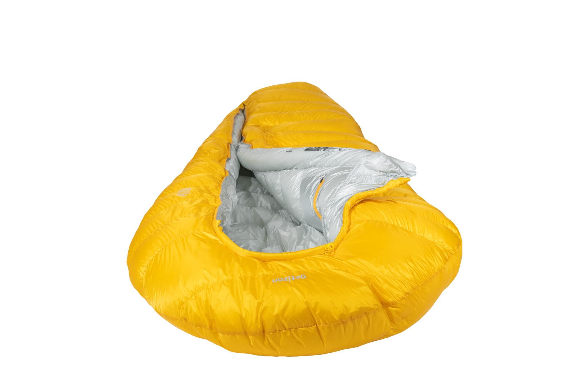 Límec kapuce je naplněn špičkovou syntetickou izolací Climashield, která lépe odolává vydýchané vlhkosti a otlakům od stahovací šňůrky než peří. Spacáky jsou na vnitřní straně vybaveny průběžnou komorou po celé délce zipu. Přes oblast zipu tak nedochází k únikům tepla. Prostorná vnitřní kapsa o rozměru 20 x 20 cm pojme vše, co chce mít rychle po ruce nebo co potřebuješ chránit před mrazem – od mobilu, přes náhradní baterie až po vodní filtr.