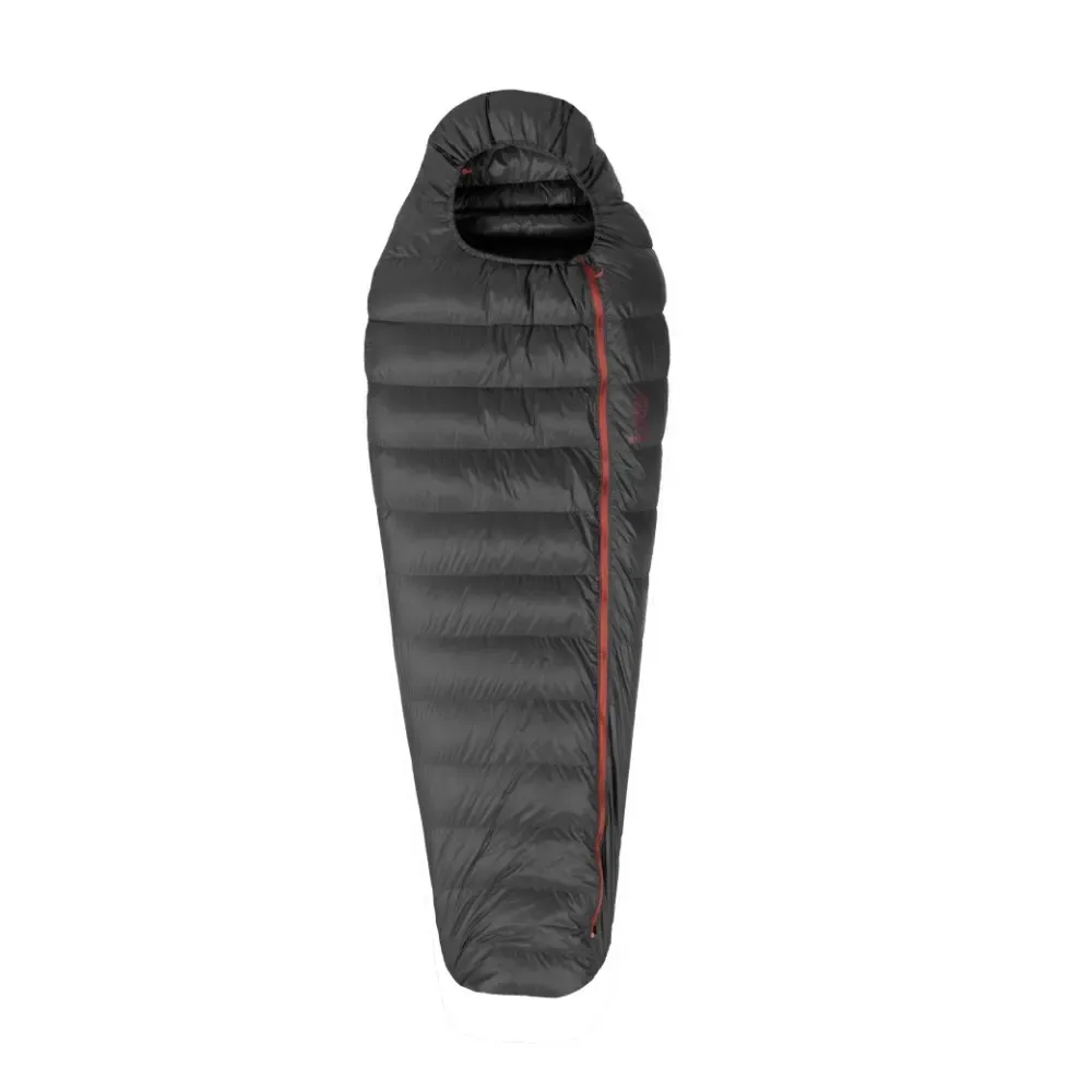 Pro vnější a vnitřní stranu spacího pytle je použita špičková látka Toray™ Airtastic™. Tento materiál je vyroben ze 100% recyklovaného nylonu, má velmi nízkou hmotnost (38 g/m), zároveň je ale pevný, větruodolný a neuvěřitelně příjemný na dotek. Látka je opatřena vodoodpudivou DWR úpravou C6, která je vysoce efektivní a ekologicky šetrnější. Dlouhodobá účinnost DWR úpravy je 80 % po dvaceti pracích cyklech. Postranní rovný poloautomatický zip SHZ umístěný na levé straně disponuje dvěma jezdci a je vyrobený z recyklovaného nylonu.