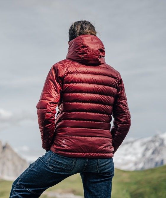V místech, kde je potřeba větší pohyblivosti, prodyšnosti nebo zatížení (ramena, boky, límec, kapuce a spodní díl zad), je použita syntetická izolace Climashield Eco 75 g/m z recyklovaných surovin. Ta nevyžaduje prošívání komor, perfektně izoluje, ale zároveň mnohem lépe pracuje s vlhkostí než klasické peří. Pás syntetické izolace vedený po boku bundy až do podpaží a na konec rukávu je přímo v podpaží přerušen, což zvyšuje pohyblivost a zlepšuje prodyšnost a odvod potu. Syntetická neprošívaná izolace ve spodní části prodlouženého zádového panelu a v oblasti ramen pak zvyšuje odolnost při nošení batohu.