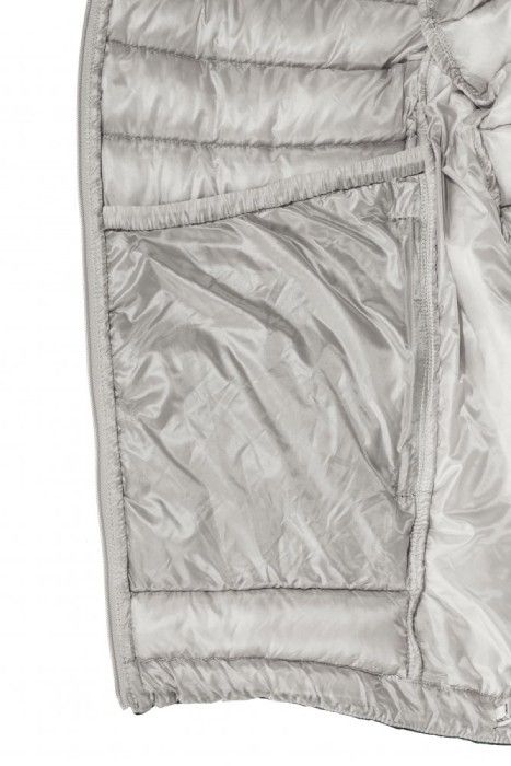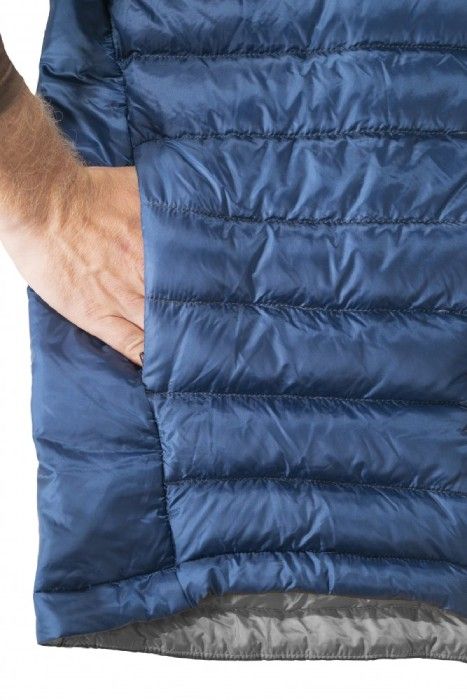 V místech, kde je potřeba větší pohyblivosti, prodyšnosti nebo zatížení (ramena, boky, límec, kapuce a spodní díl zad), je použita syntetická izolace Climashield Eco 75 g/m z recyklovaných surovin. Ta nevyžaduje prošívání komor, perfektně izoluje, ale zároveň mnohem lépe pracuje s vlhkostí než klasické peří. Pás syntetické izolace vedený po boku bundy až do podpaží a na konec rukávu je přímo v podpaží přerušen, což zvyšuje pohyblivost a zlepšuje prodyšnost a odvod potu. Syntetická neprošívaná izolace ve spodní části prodlouženého zádového panelu a v oblasti ramen pak zvyšuje odolnost při nošení batohu.