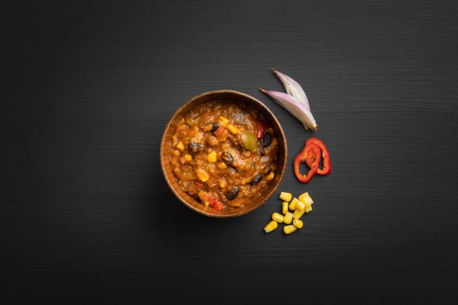 Taco maso (hovězí maso (60%), bramborový škrob, koření, sůl, stabilizátor (E451, E450), dextróza (kukuřice), antioxidant (E301, E392)) (21%), paprika (15%), rajčata, fazole (13%), cibule (8,5%), kukuřice (5,3%), rajčatový protlak, řepkový olej, pórek, kukuřičný škrob, celer, koření taco (koření, bramborový škrob, protispékavá látka (oxid křemičitý)), masový vývar (kvasnicový extrakt, maltodextrin, sůl, řepkový olej, masový extrakt, hnědý cukr, cibule), česnek, koření, antioxidant (kyselina askorbová).