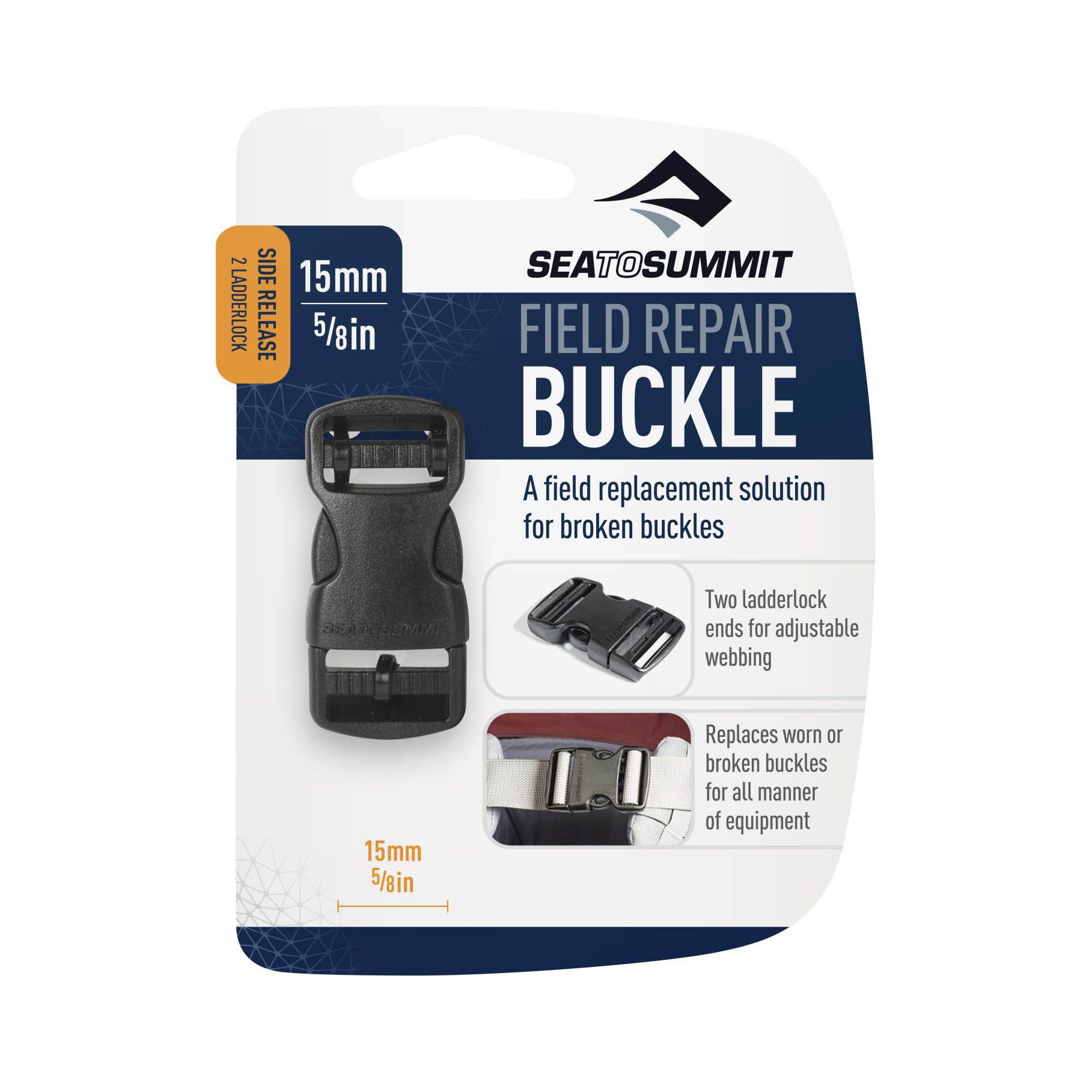 Field Repair Buckle je náhradní přezka pro snadnou a rychlou náhradu rozbitých nebo viditelně opotřebovaných přezek na popruzích třeba u batohu. Prodáváme v několika velikostech pro různé šířky popruhů – 15 mm, 20 mm, 25 mm, 38 mm a 50 mm.
