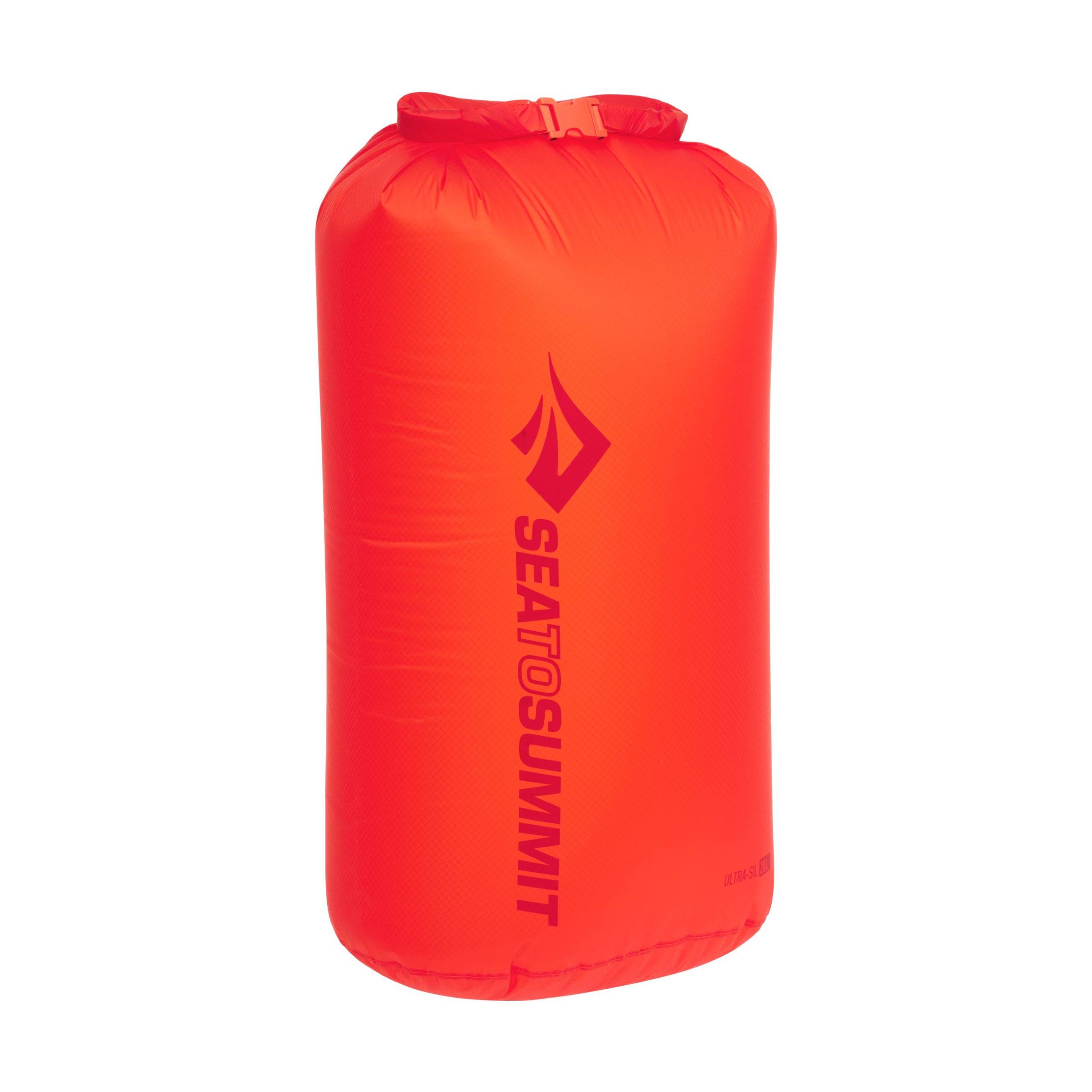 Materiál Ultra-Sil 30D Cordura skvěle kombinuje nízkou hmotnost a odolnost. Jeho vodní sloupec je více než 2000 mm. Dvojitě prošité a podlepené švy, DRW úprava, a vyztužený rolovací uzávěr s plastovou sponou podtrhují nepromokavost vaku. Díky tomu jsou věci uvnitř chráněny před vlhkostí. Materiál lehce prosvítá, takže umožňuje rozeznat obsah.
